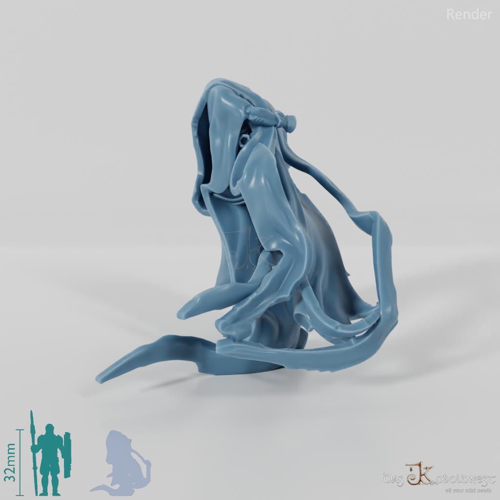 Körperlose Geistergestalt ohne Kopf und Hände mit wirbelnder, zerschlissener Kutte. Das Modell kann beliebig mit allen modularen Köpfen und Waffen der Reihe "Die Armee der Toten" kombiniert werden. Im Customizer von The Printing Goes Ever On kannst du dir selbst eine Vorschau deiner modularen Geisterarmee erstellen und die perfekten Kombinationen für dich finden.