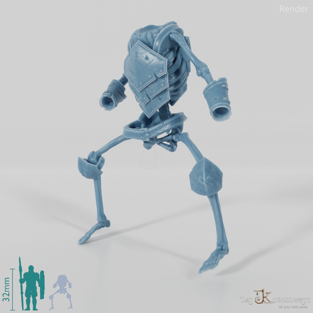 Untotenkörper ohne Kopf und Hände mit skelettiertem Körper in Rüstung. Das Modell kann beliebig mit allen modularen Köpfen und Waffen der Reihe "Die Armee der Toten" kombiniert werden. Im Customizer von The Printing Goes Ever On kannst du dir selbst eine Vorschau deiner modularen Geisterarmee erstellen und die perfekten Kombinationen für dich finden.