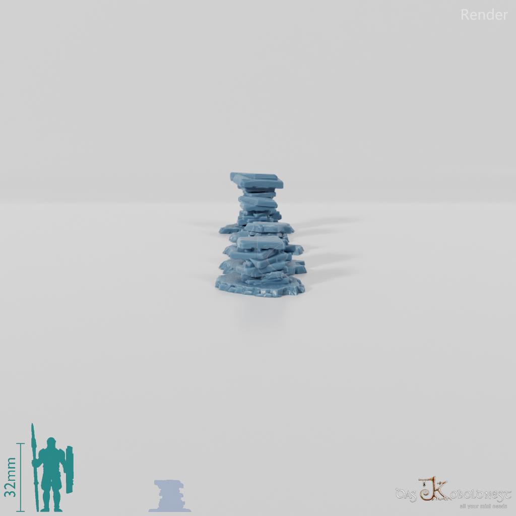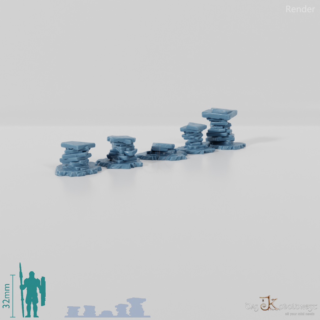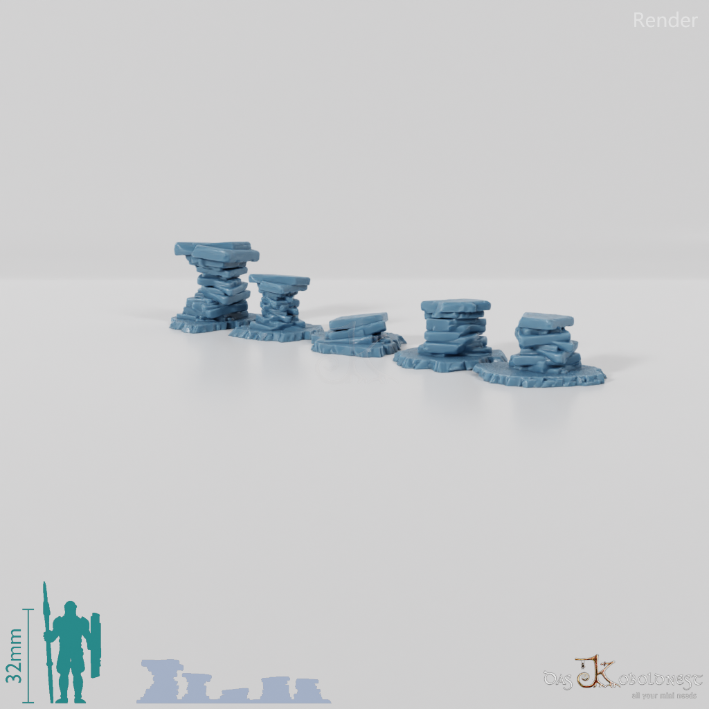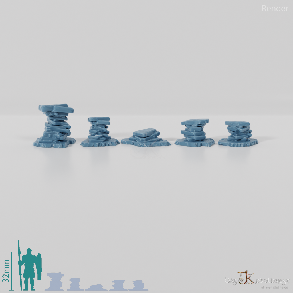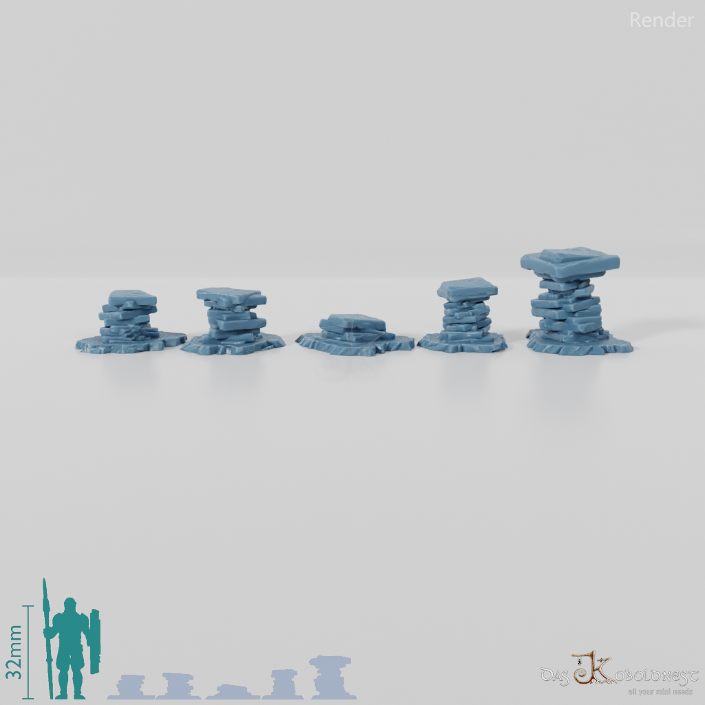 Zu kleinen Säulen aufgetürmte Steinplatten