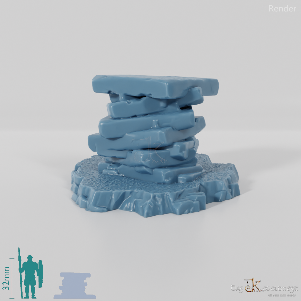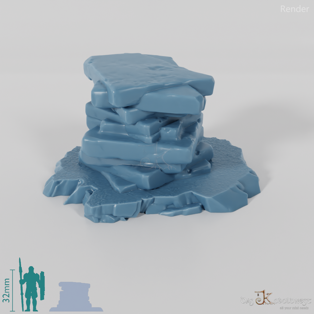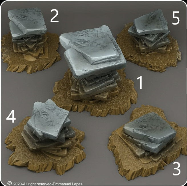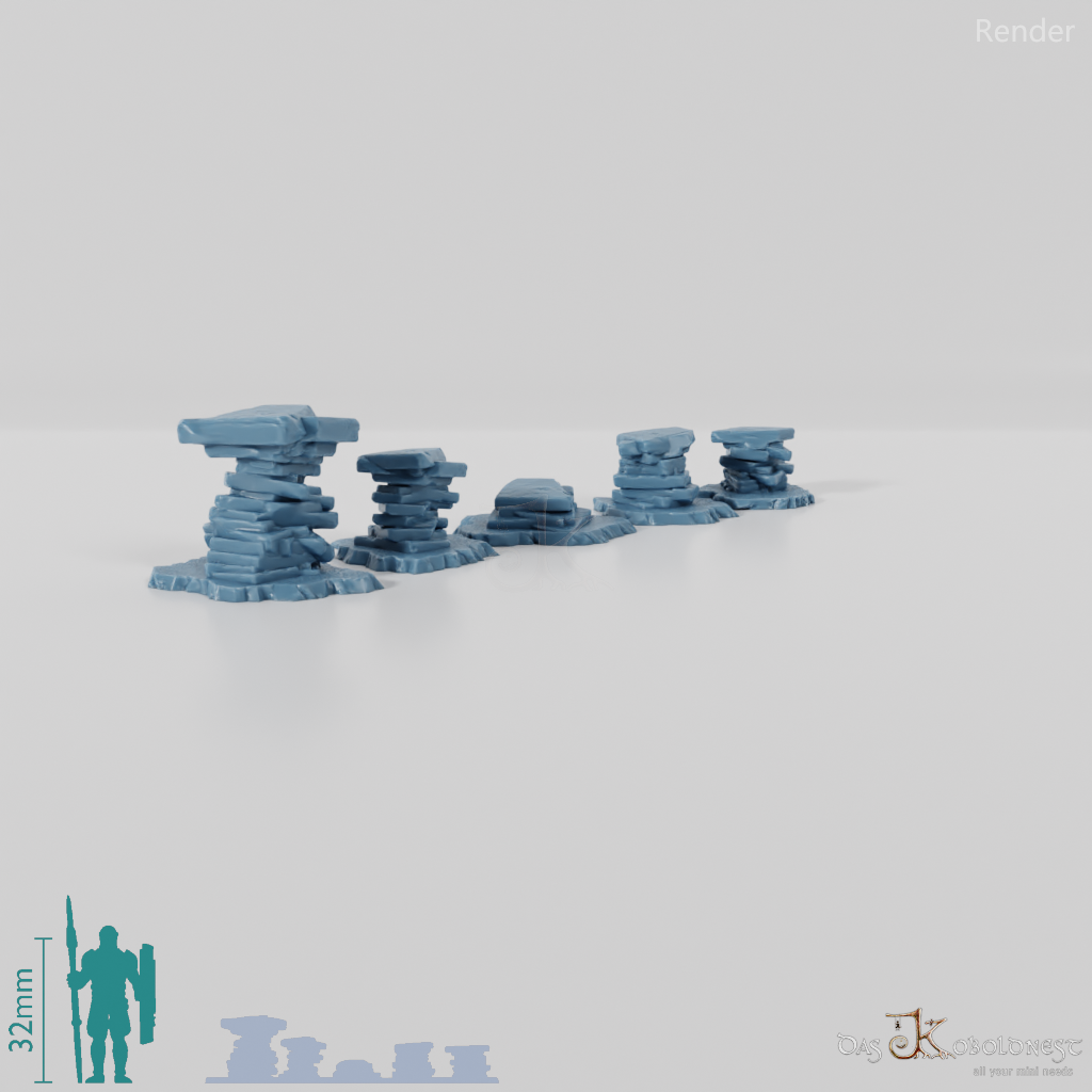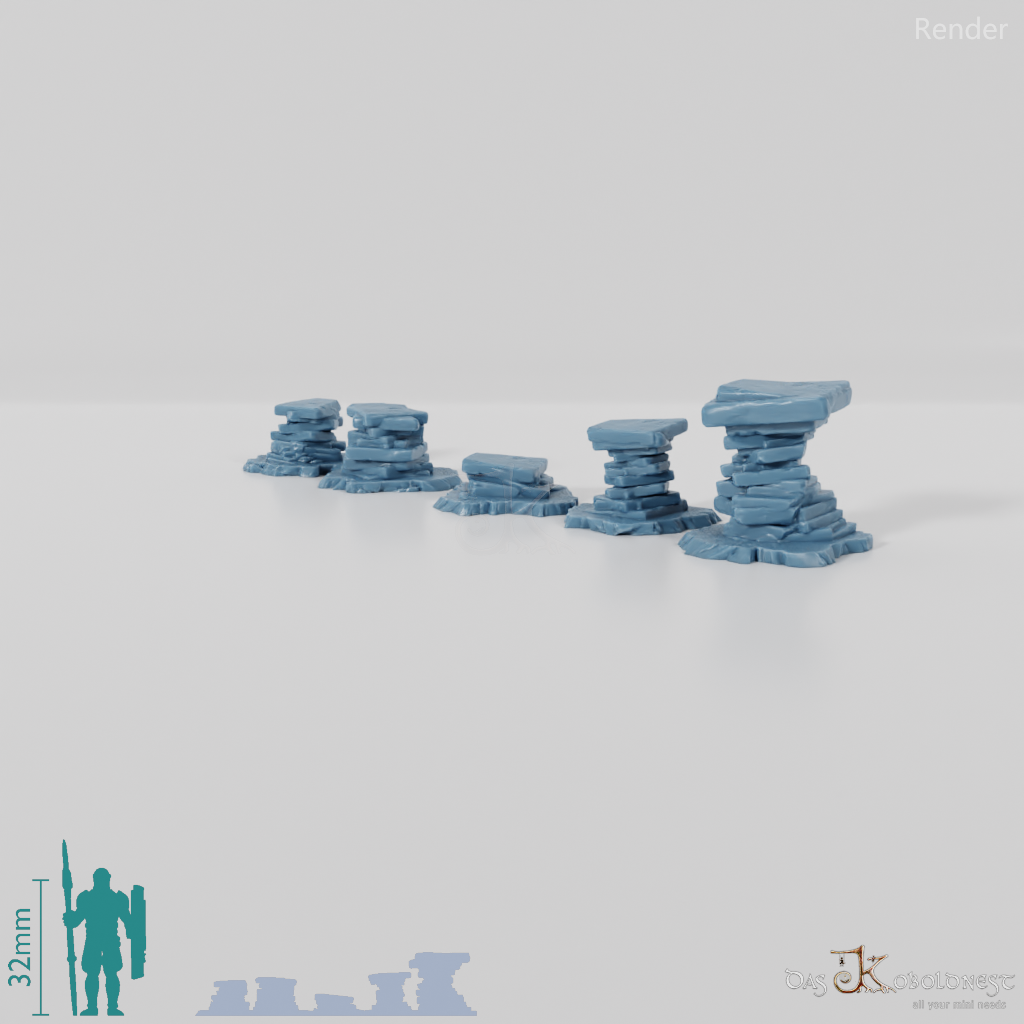 Zu kleinen Säulen aufgetürmte Steinplatten