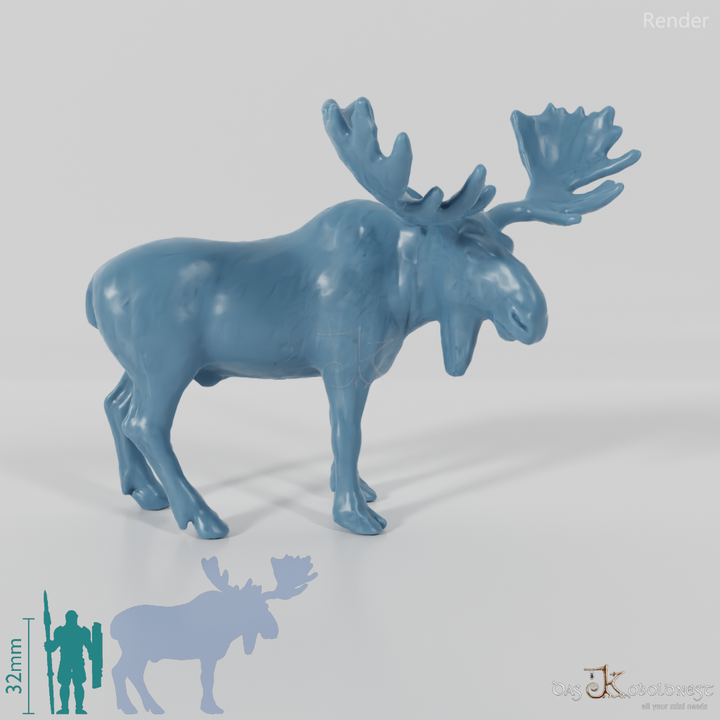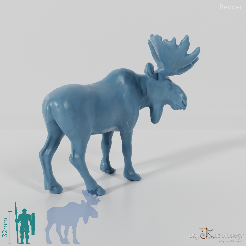 Zur Seite sehender Elch   Modell: Moose by lordkylo, lizenziert unter CC BY-SA 3.0.