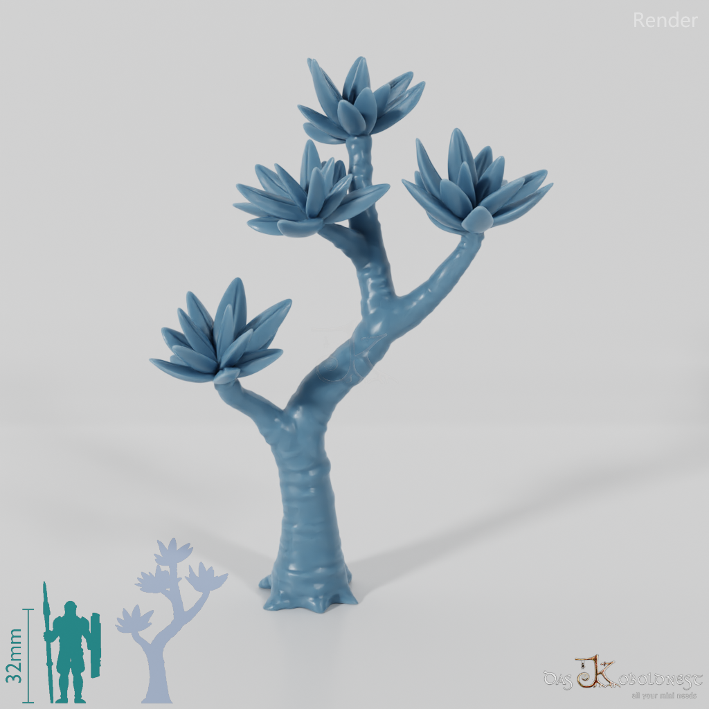 Kleines Bäumchen mit leichter Verzweigung und groben Blättern