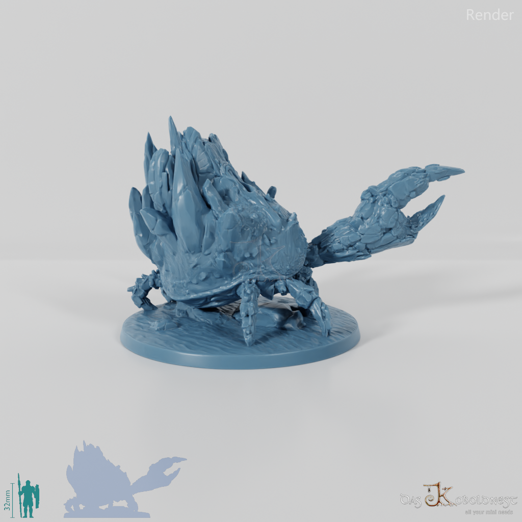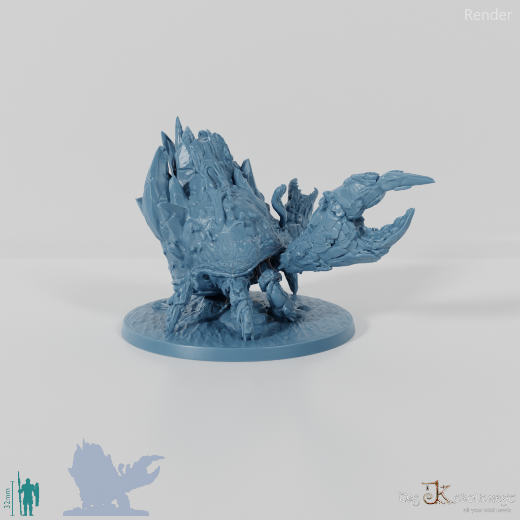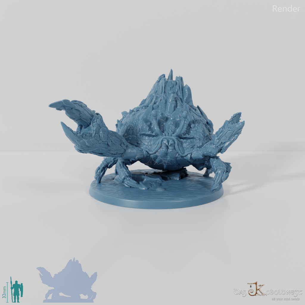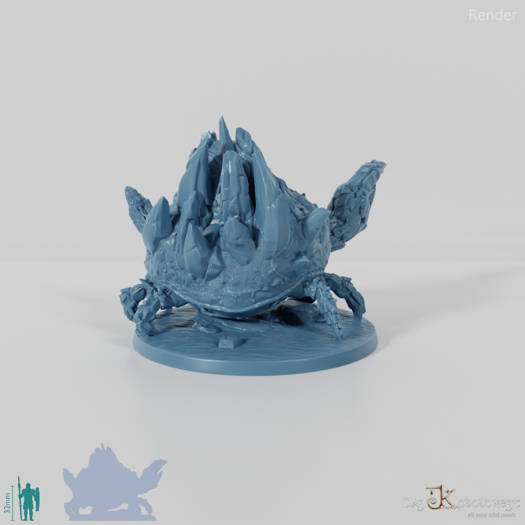 Elementargeist in Gestalt einer riesigen Krabbe mit steinernem Panzer, aus dem sich Lava ergießt
