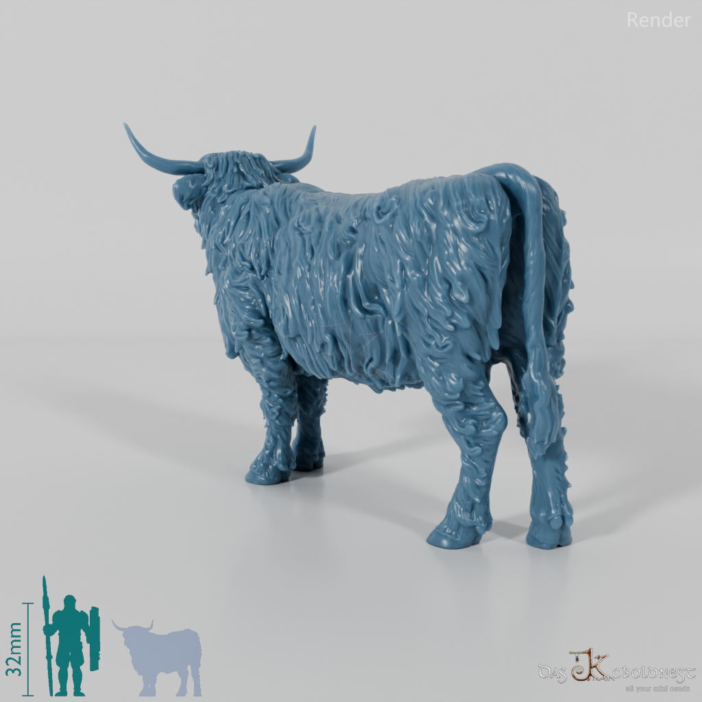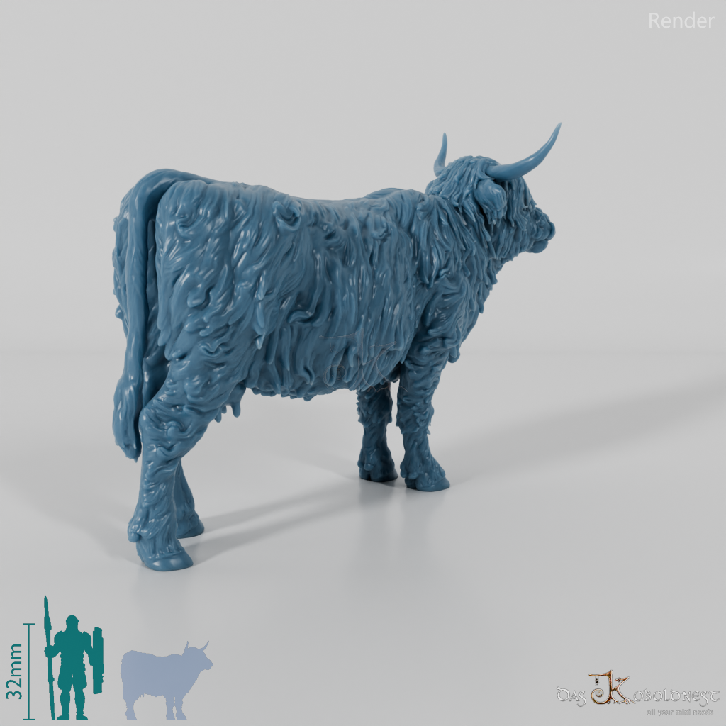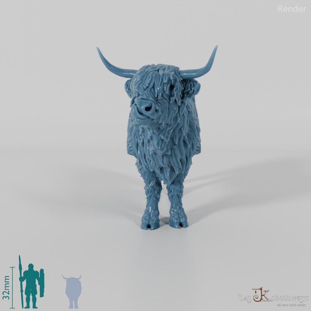 Lebensgetreue Nachbildung der ältesten eingetragenen Viehrasse, dem Highland Cattle oder Kyloe (Bos taurus)