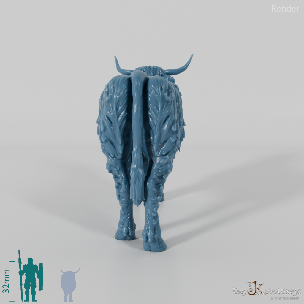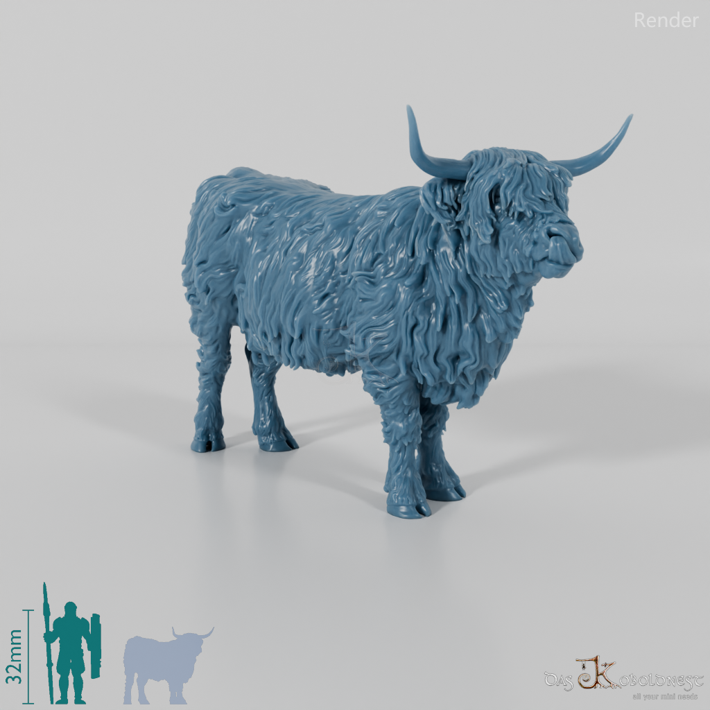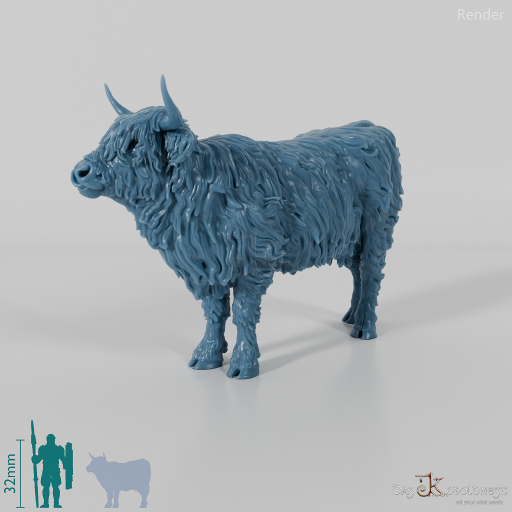 Lebensgetreue Nachbildung der ältesten eingetragenen Viehrasse, dem Highland Cattle oder Kyloe (Bos taurus)