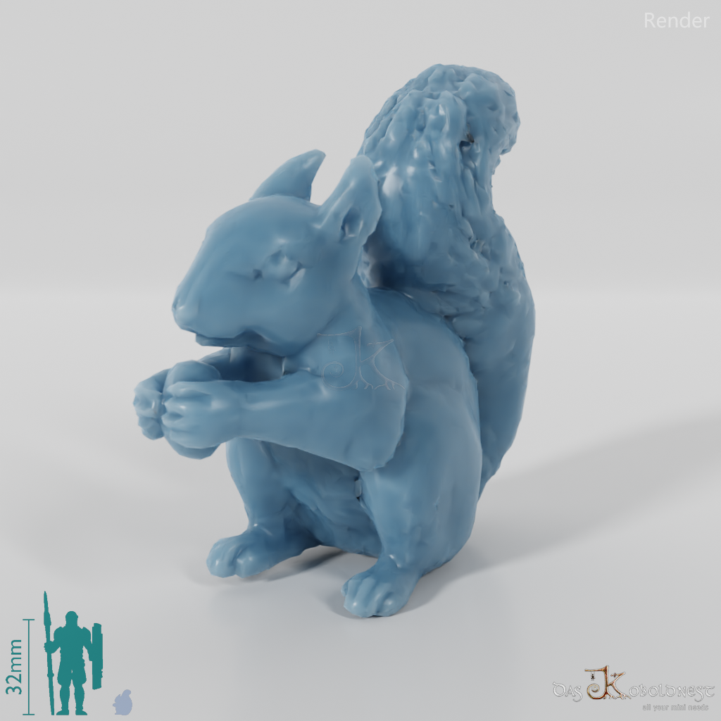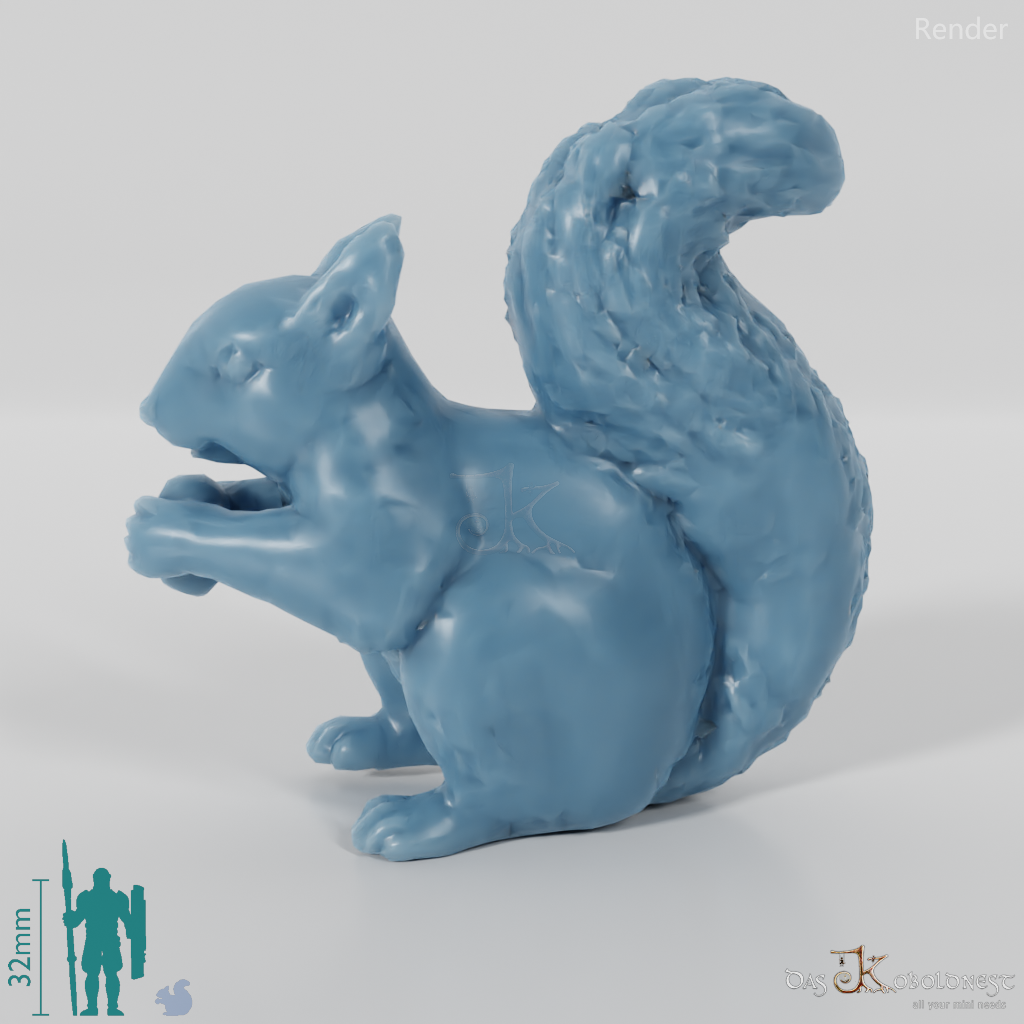 Eichhörnchen mit Nuss in den Pfoten. Modell: Squirrel by lordkylo, lizenziert unter CC BY-SA 3.0.