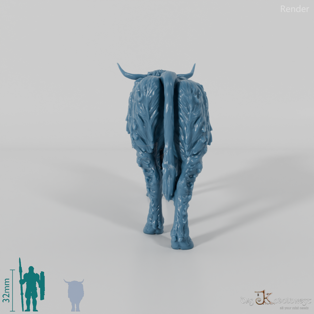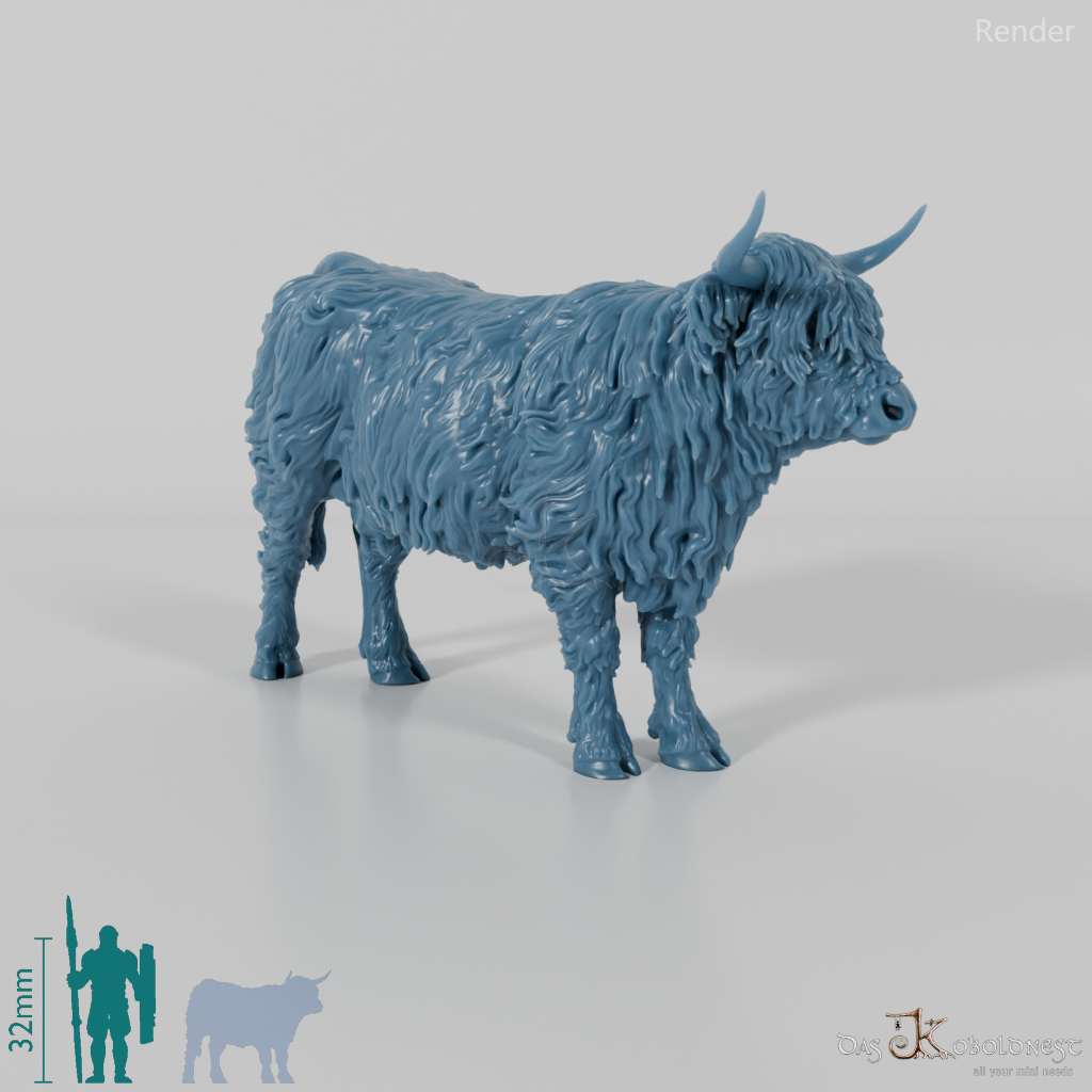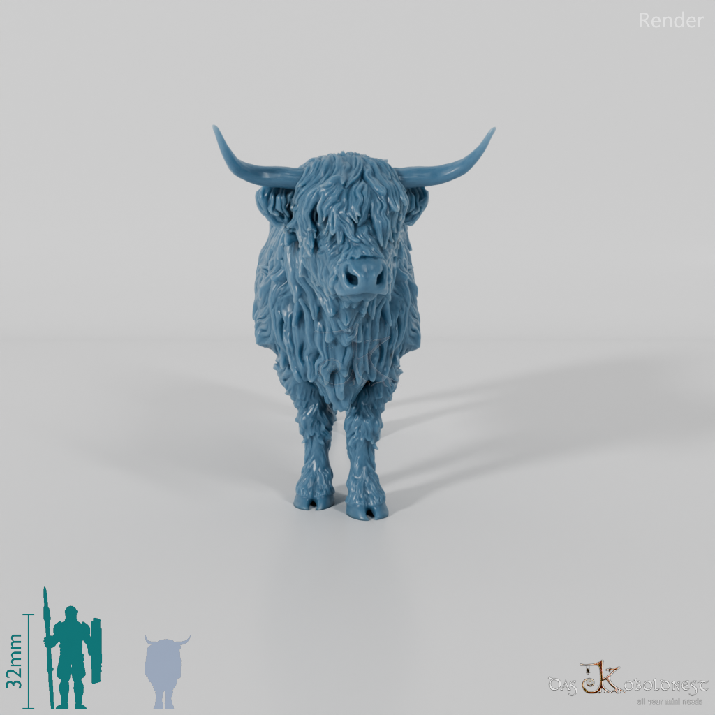 Lebensgetreue Nachbildung der ältesten eingetragenen Viehrasse, dem Highland Cattle oder Kyloe (Bos taurus)