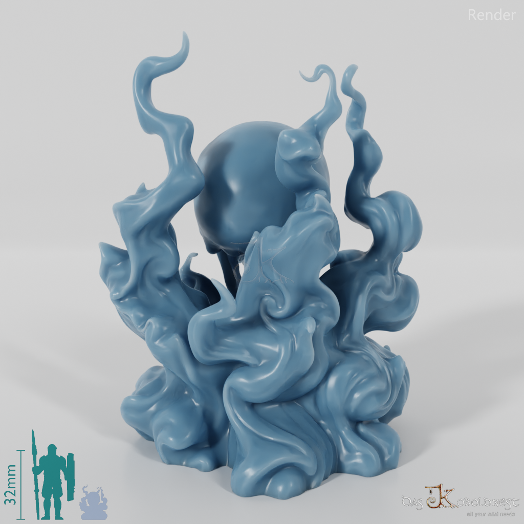 Auf Flammen reitender Menschenschädel Modell: Demilich - D&D Miniature by kaimueri, lizenziert unter CC BY-SA 3.0.