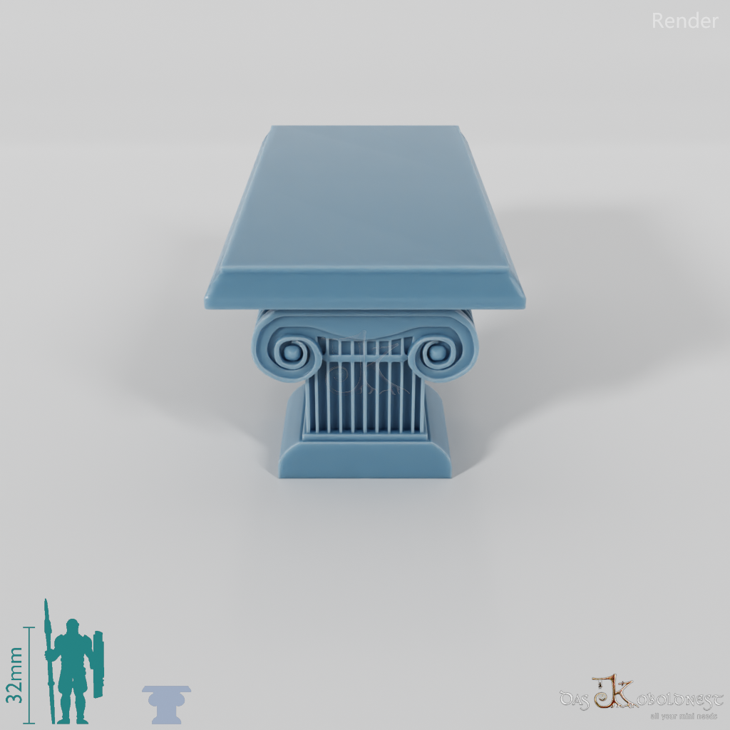 Neo-klassische Steinbank, die auf zwei niedrigen Säulen liegt