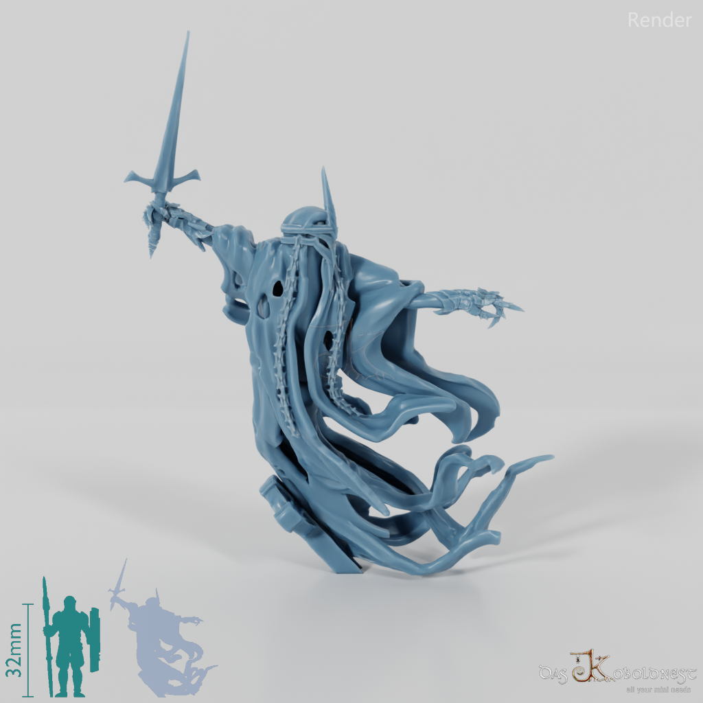 Geistergestalt mit Krone, die mit einem schlanken, langen Messer bewaffnet ist