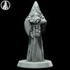 Verhüllte Henkersgestalt in weiter Robe mit großer, geschwungener Axt