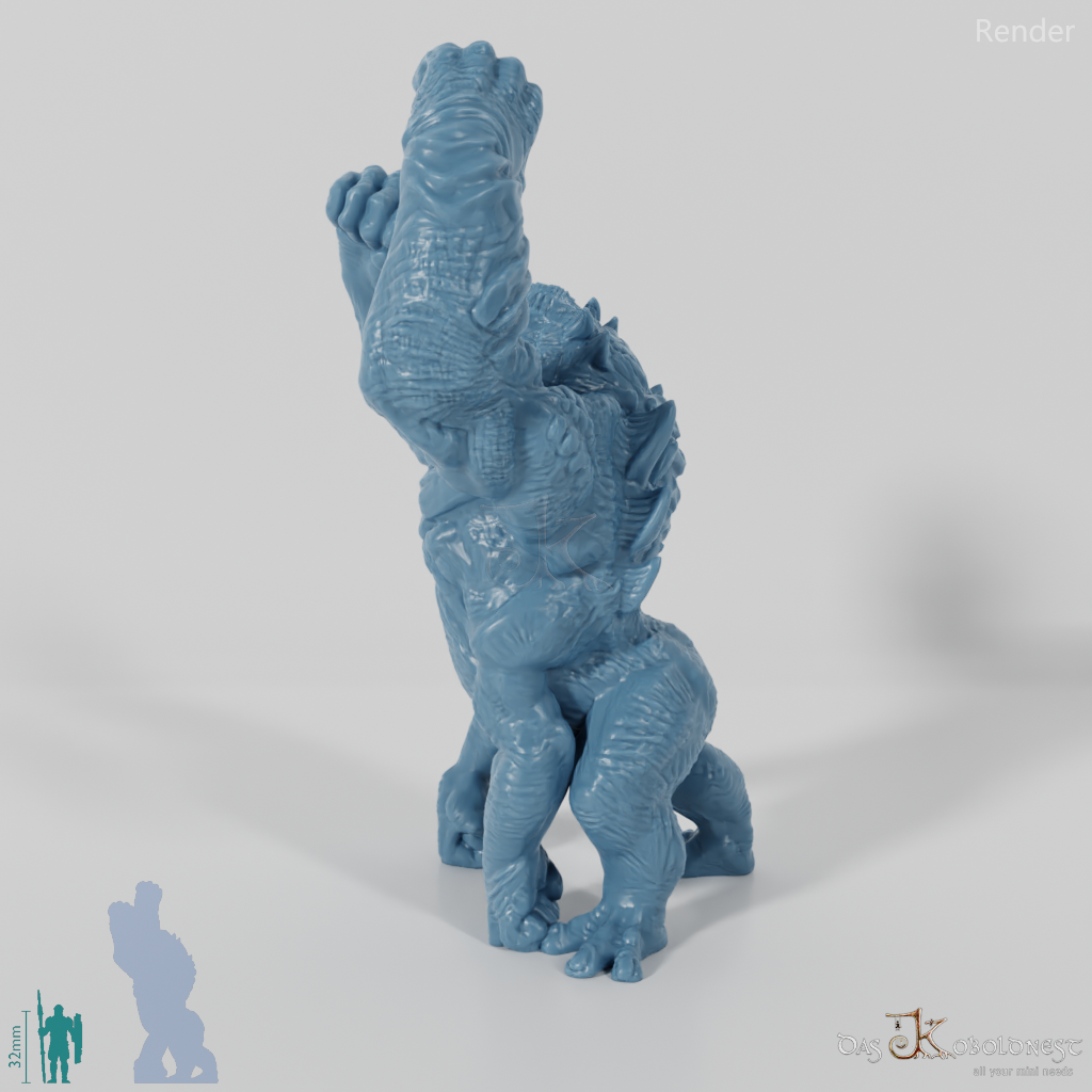 Aufrechte, teils geschuppte, teils lederhäutige Bestie mit vier Armen und der Statur eines Gorillas.