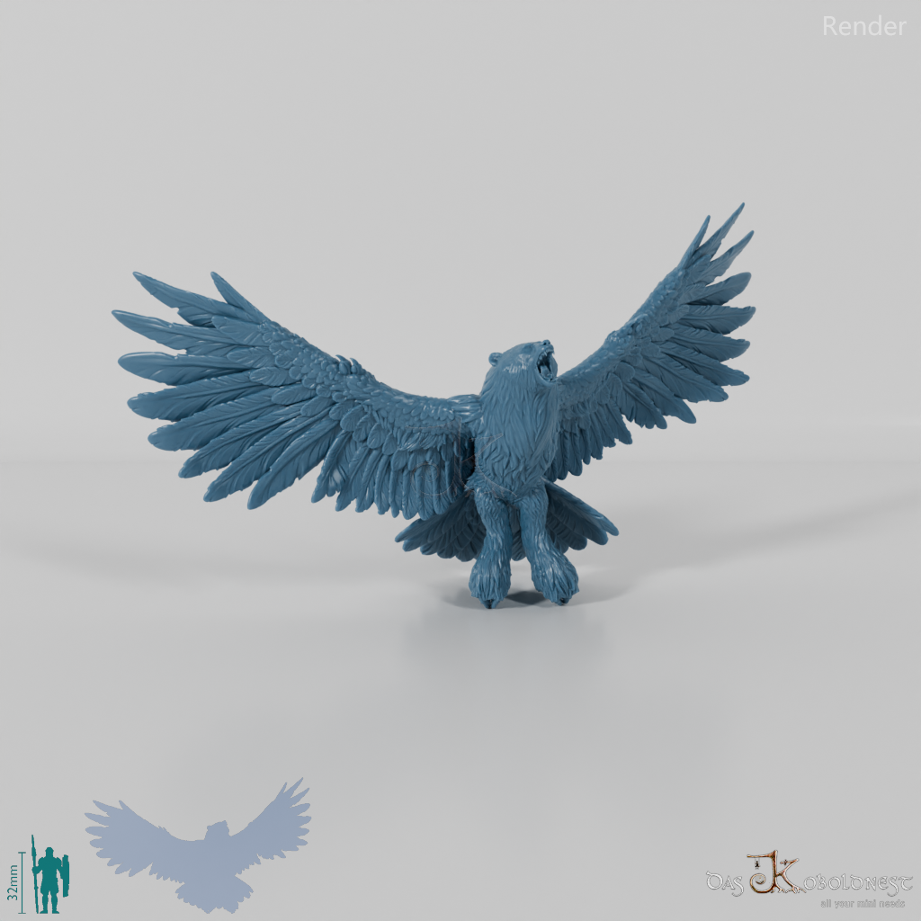 Geflügelte Bestie mit den Schwingen einer Eule und dem Körper eines kräftigen Bären.