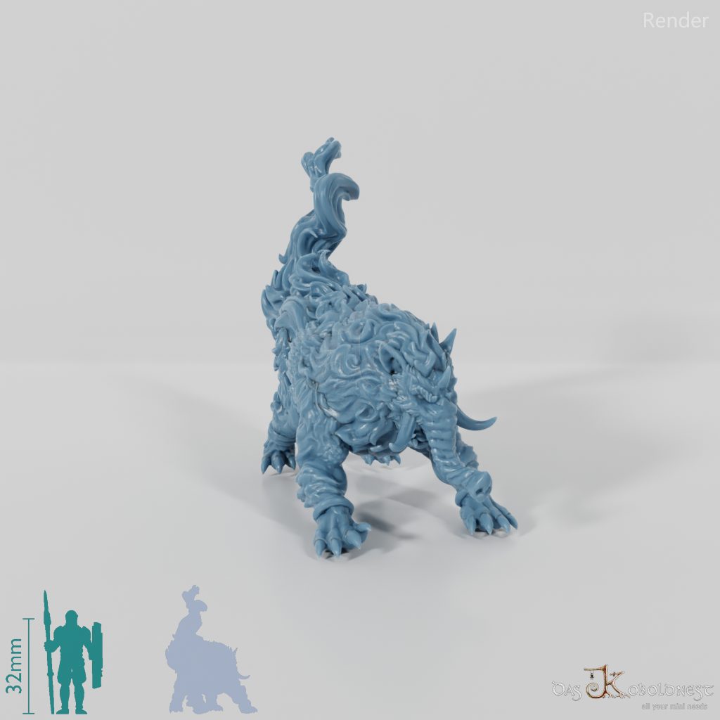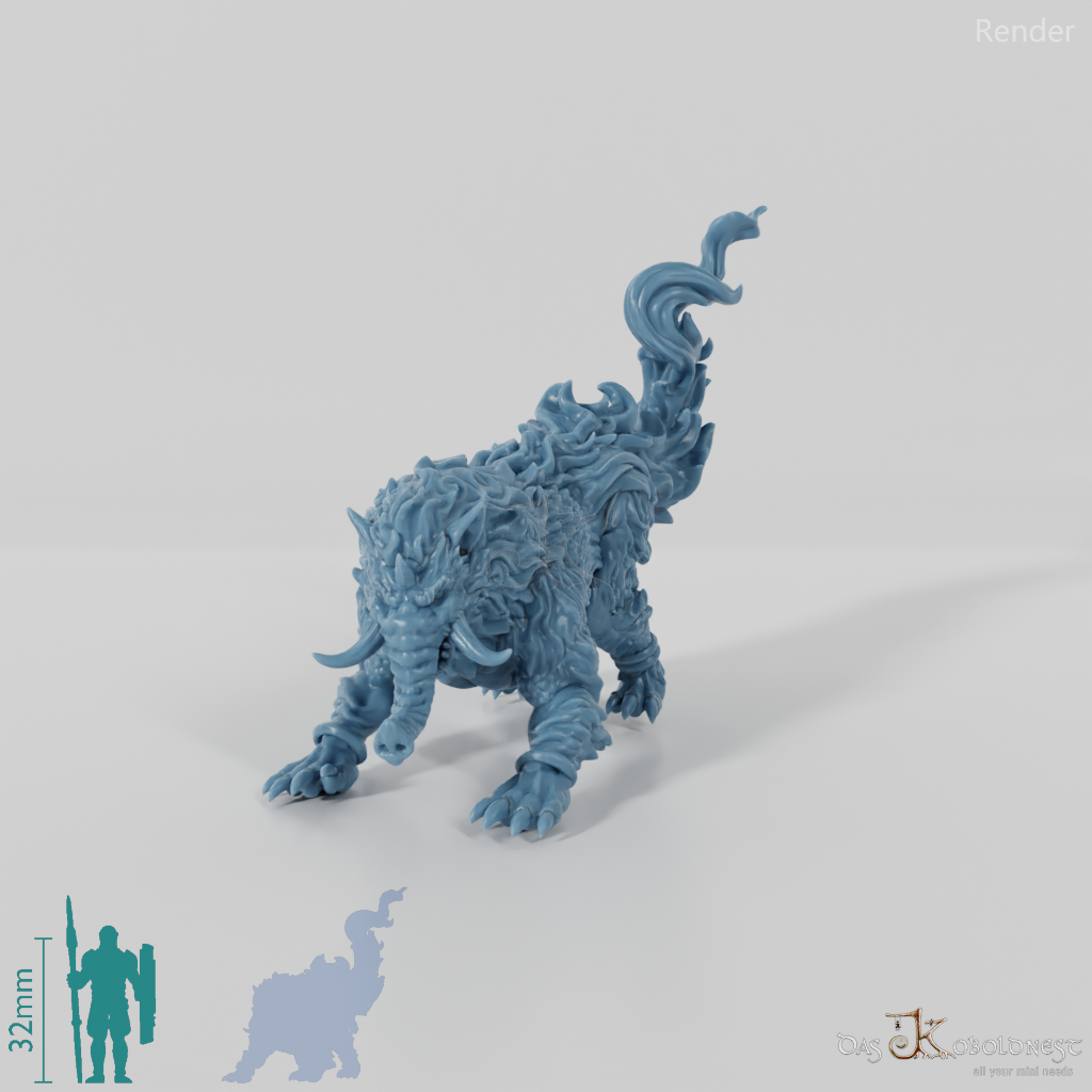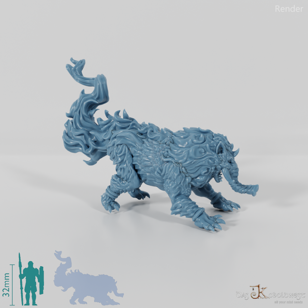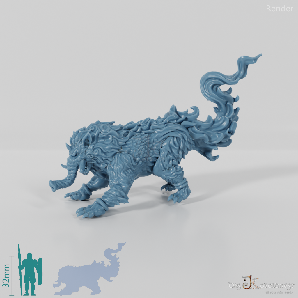 Japanisches, alptraumfressendes Fabelwesen mit dichtem Fell, langem Schweif und Elefantenrüssel