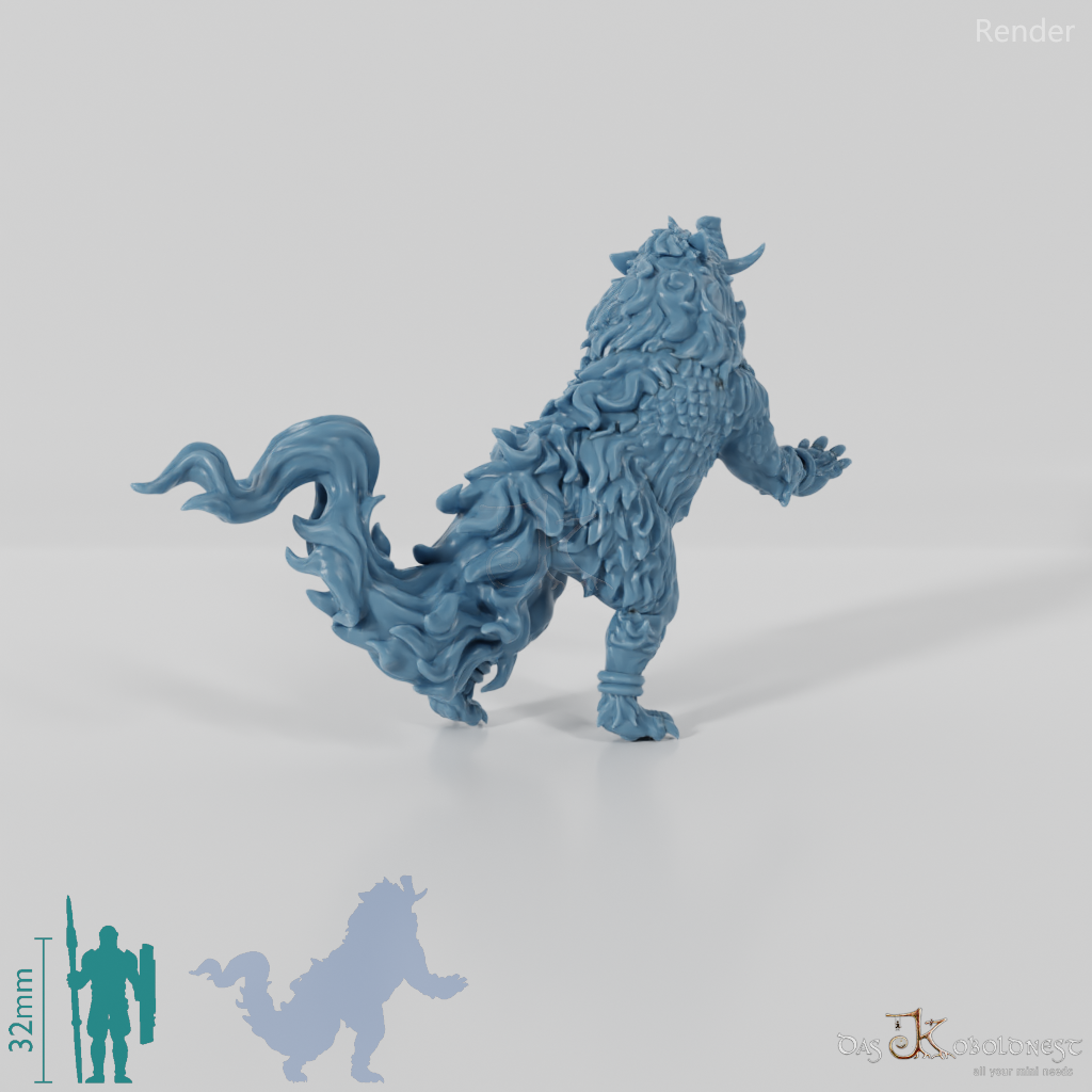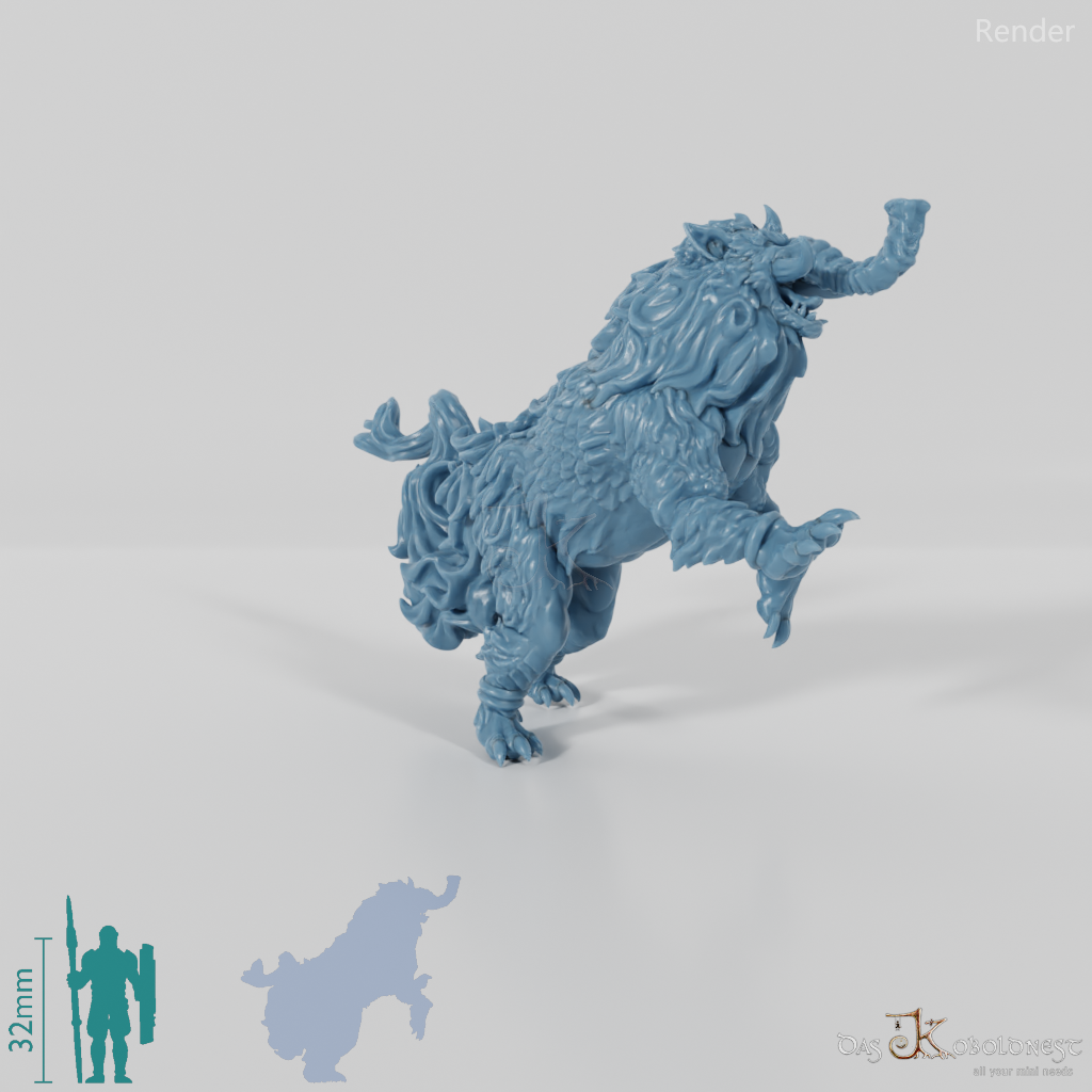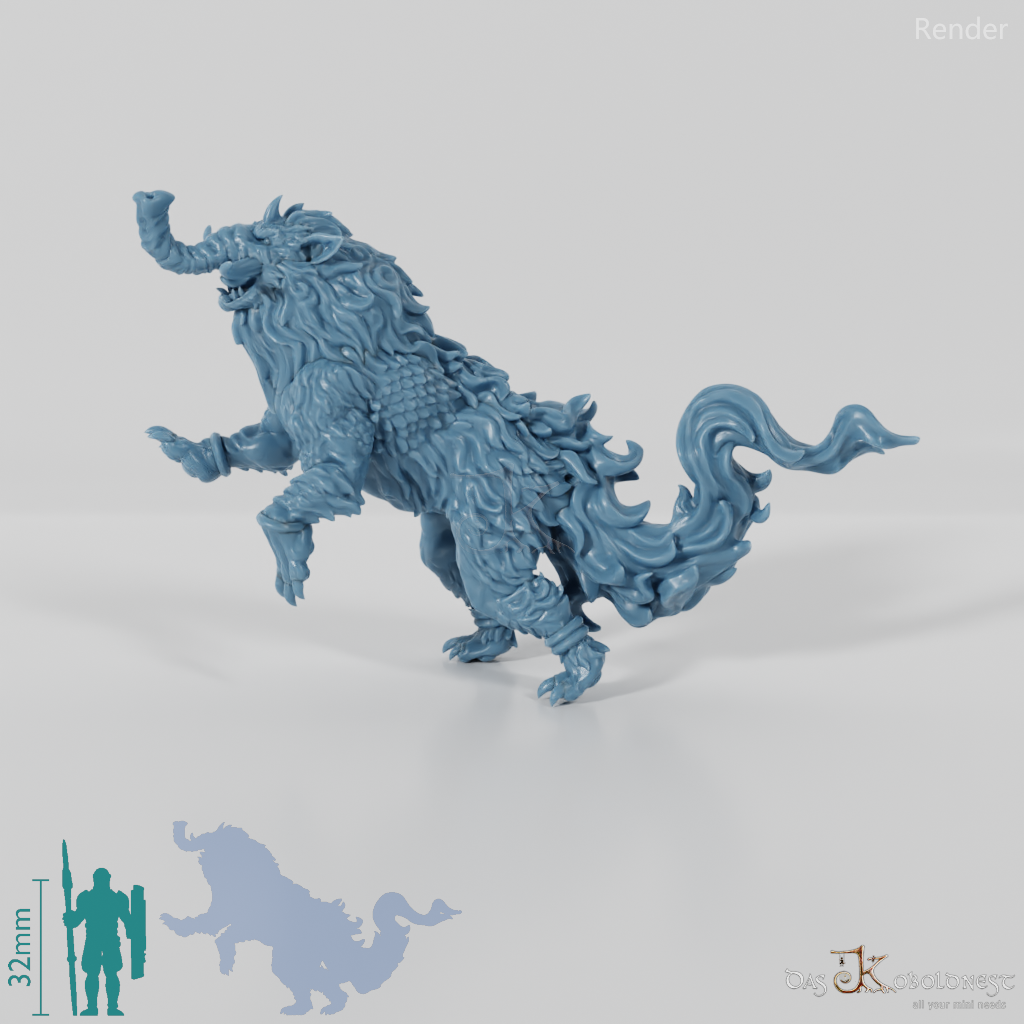 Japanisches, alptraumfressendes Fabelwesen mit dichtem Fell, langem Schweif und Elefantenrüssel