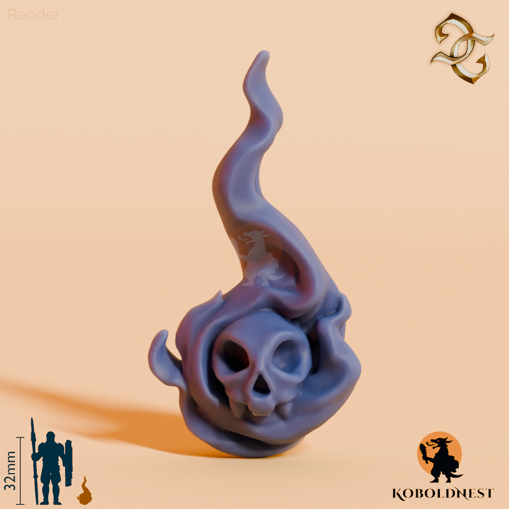 Wild flackernde Flamme, in deren Zentrum ein kleiner Totenkopf erkennbar ist