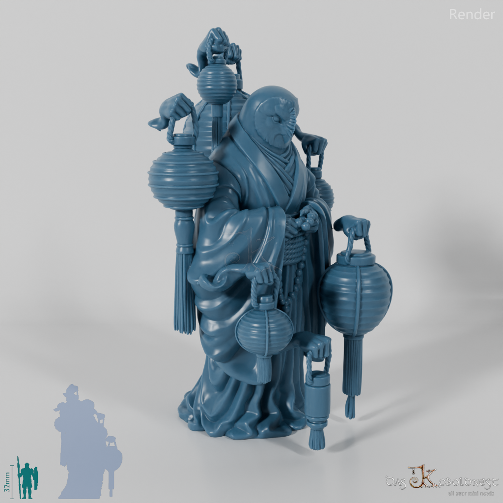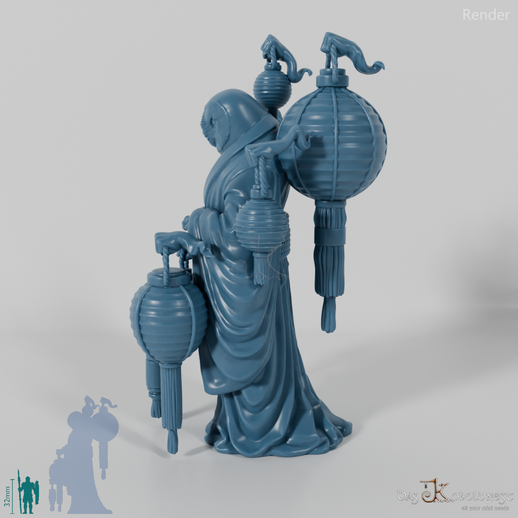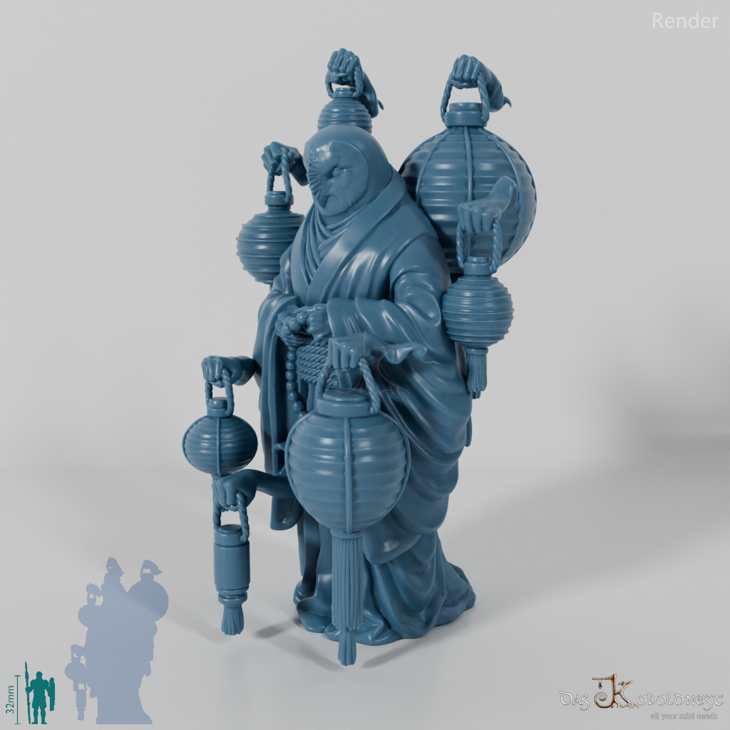 Betrete die düstere und faszinierende Welt der Yokai mit Fong Hai, dem Lügensammler. Die verhängnisvolle Präsenz dieser Kreatur zieht jeden in ihren Bann, der es wagt, in ihre tiefen Augen zu blicken. Stelle dir eine gewaltige humanoide Eule vor, deren Augen die Geheimnisse und Lügen unzähliger Seelen widerspiegeln. Ihr weit geschnittener Kimono flattert geheimnisvoll im Wind und verleiht ihr eine Erscheinung, die sowohl furchterregend als auch majestätisch ist. Aber das wahre Spektakel sind die schwebenden Papierlaternen, die sie umgeben. Von körperlosen Händen getragen, wirken diese Laternen wie die gefangenen Seelen derjenigen, die Fong Hai mit ihren Lügen gefüttert haben. Dieses Modell bietet eine unvergleichliche Detailtiefe, von den Federstrukturen der Eule bis hin zu den fein gearbeiteten Mustern der Laternen und des Kimonos. Jeder Aspekt von Fong Hai, dem Lügensammler, wurde sorgfältig gestaltet, um die düstere Atmosphäre der Yokai-Mythologie einzufangen. Ideal für Sammler und Liebhaber von düsteren Fantasiegeschichten, wird dieser Yokai eine beeindruckende und unvergessliche Ergänzung für jede Sammlung oder Diorama sein. Ergreife die Gelegenheit und lass dich von Fong Hai, dem Lügensammler, in eine Welt der Mythen und Legenden entführen. Aber Vorsicht – lass dich nicht von seinen Lügen verführen!