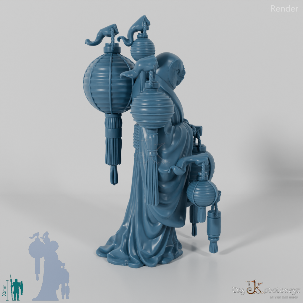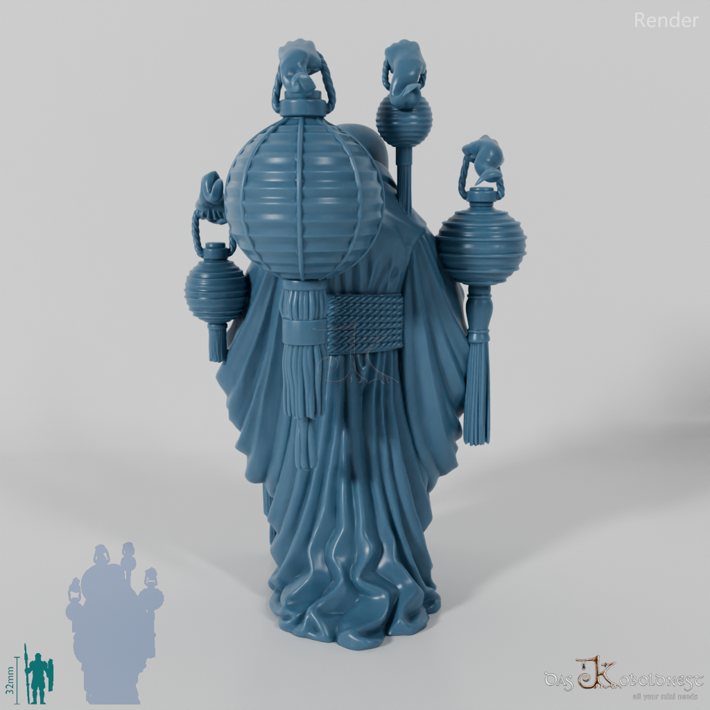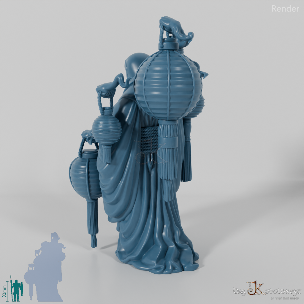 Betrete die düstere und faszinierende Welt der Yokai mit Fong Hai, dem Lügensammler. Die verhängnisvolle Präsenz dieser Kreatur zieht jeden in ihren Bann, der es wagt, in ihre tiefen Augen zu blicken. Stelle dir eine gewaltige humanoide Eule vor, deren Augen die Geheimnisse und Lügen unzähliger Seelen widerspiegeln. Ihr weit geschnittener Kimono flattert geheimnisvoll im Wind und verleiht ihr eine Erscheinung, die sowohl furchterregend als auch majestätisch ist. Aber das wahre Spektakel sind die schwebenden Papierlaternen, die sie umgeben. Von körperlosen Händen getragen, wirken diese Laternen wie die gefangenen Seelen derjenigen, die Fong Hai mit ihren Lügen gefüttert haben. Dieses Modell bietet eine unvergleichliche Detailtiefe, von den Federstrukturen der Eule bis hin zu den fein gearbeiteten Mustern der Laternen und des Kimonos. Jeder Aspekt von Fong Hai, dem Lügensammler, wurde sorgfältig gestaltet, um die düstere Atmosphäre der Yokai-Mythologie einzufangen. Ideal für Sammler und Liebhaber von düsteren Fantasiegeschichten, wird dieser Yokai eine beeindruckende und unvergessliche Ergänzung für jede Sammlung oder Diorama sein. Ergreife die Gelegenheit und lass dich von Fong Hai, dem Lügensammler, in eine Welt der Mythen und Legenden entführen. Aber Vorsicht – lass dich nicht von seinen Lügen verführen!