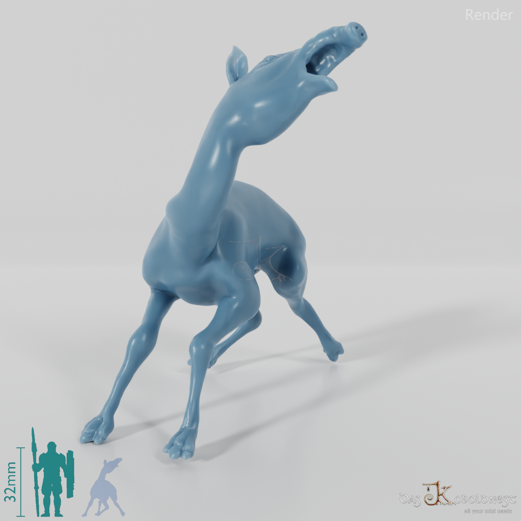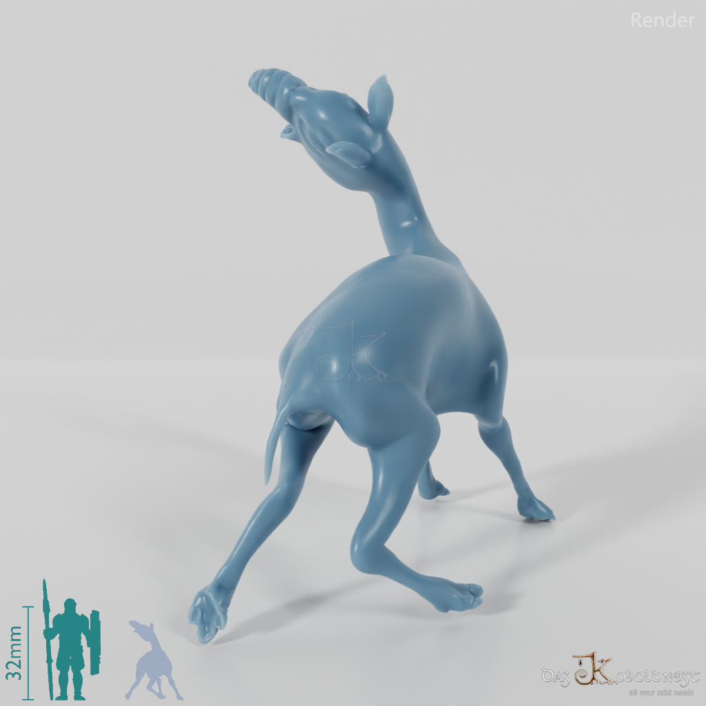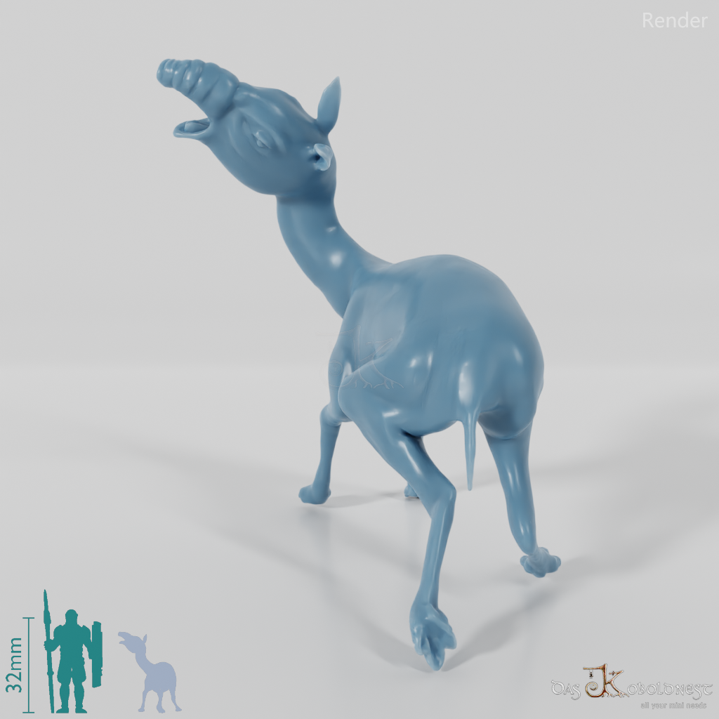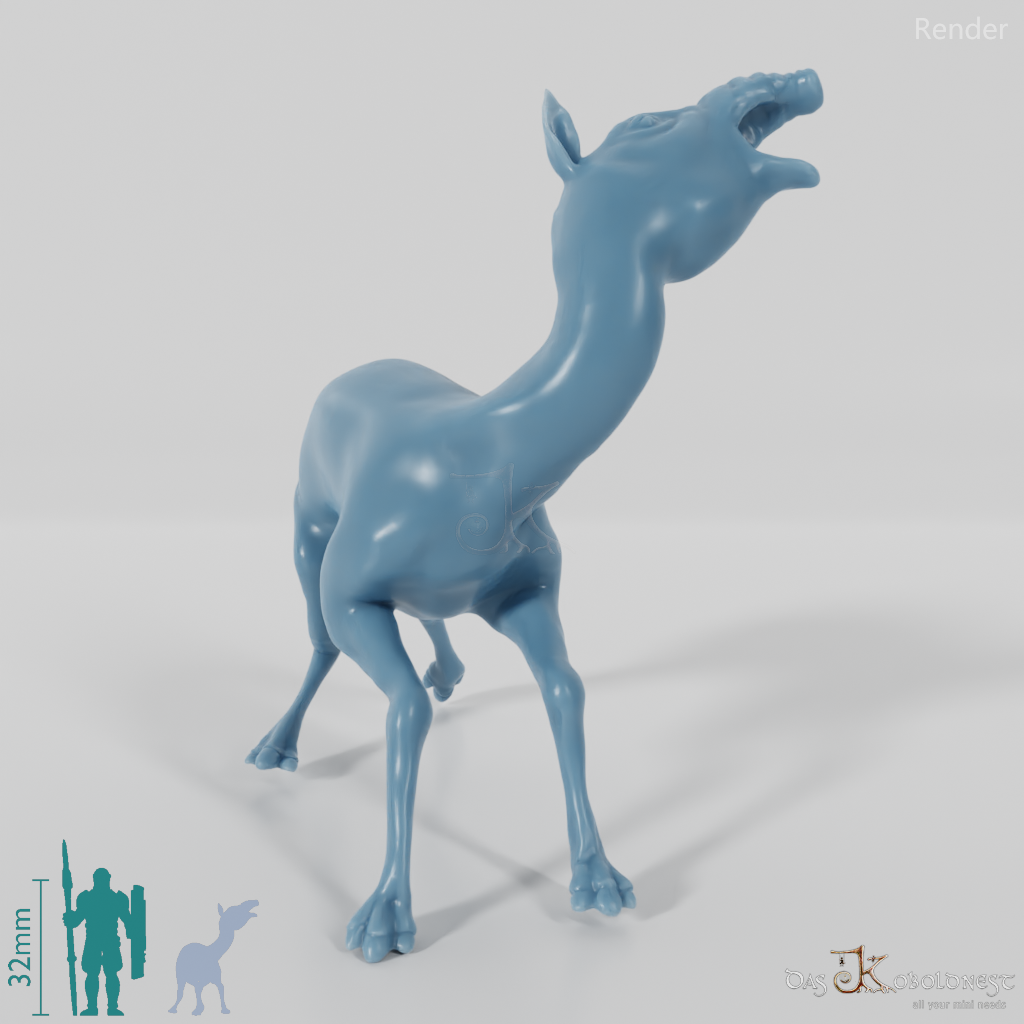 Jungtier eines inzwischen ausgestorbenen lamaartigen Säugetiers mit kurzem Rüssel
