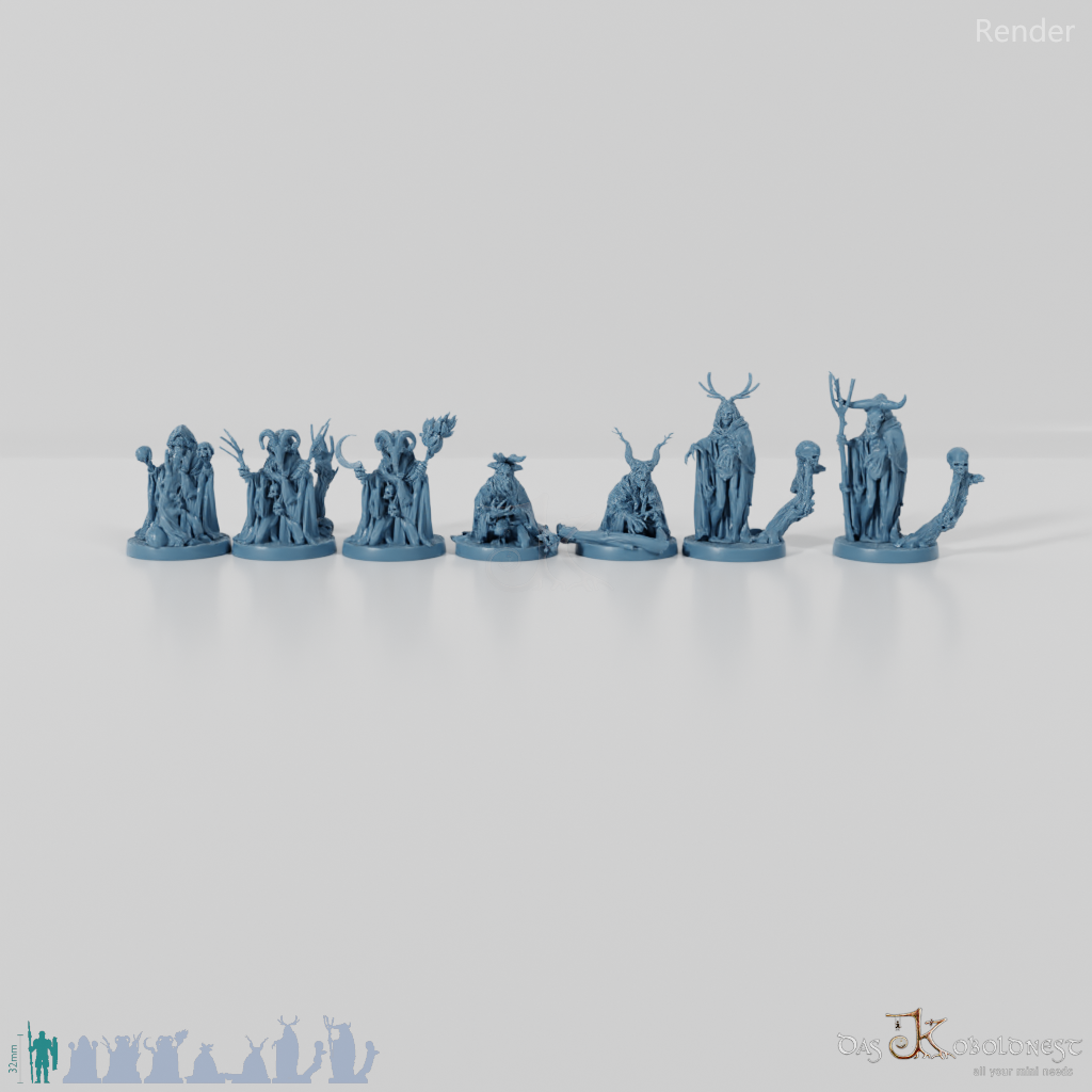 Set der sieben verschiedenen Hexen aus Baba Hecubas Hexenzirkel.