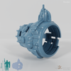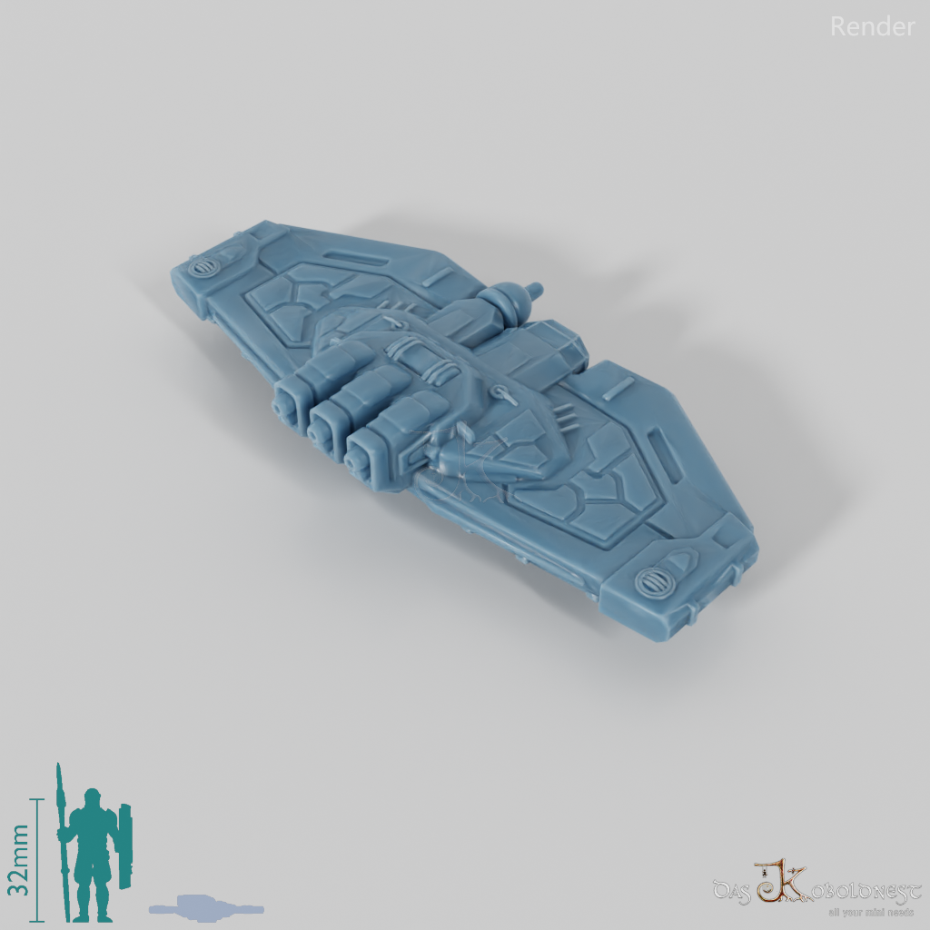 Modell hat ein Loch mit 5 mm Durchmesser an der Unterseite, um auf eine Flugbase montiert werden zu können. Der Modellmaßstab orientiert sich an den gängigen Größen anderer Raumschlachten-Systeme.
