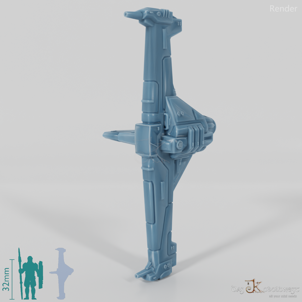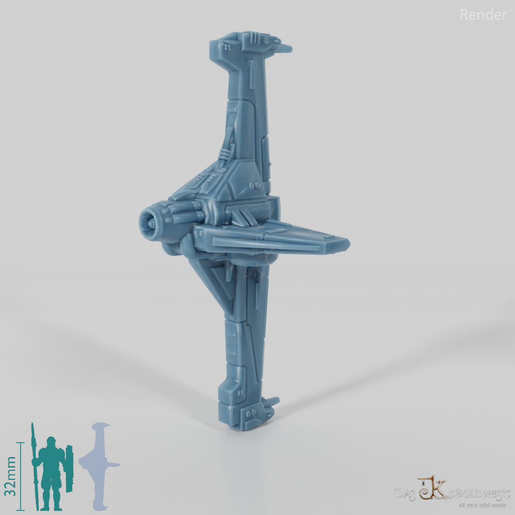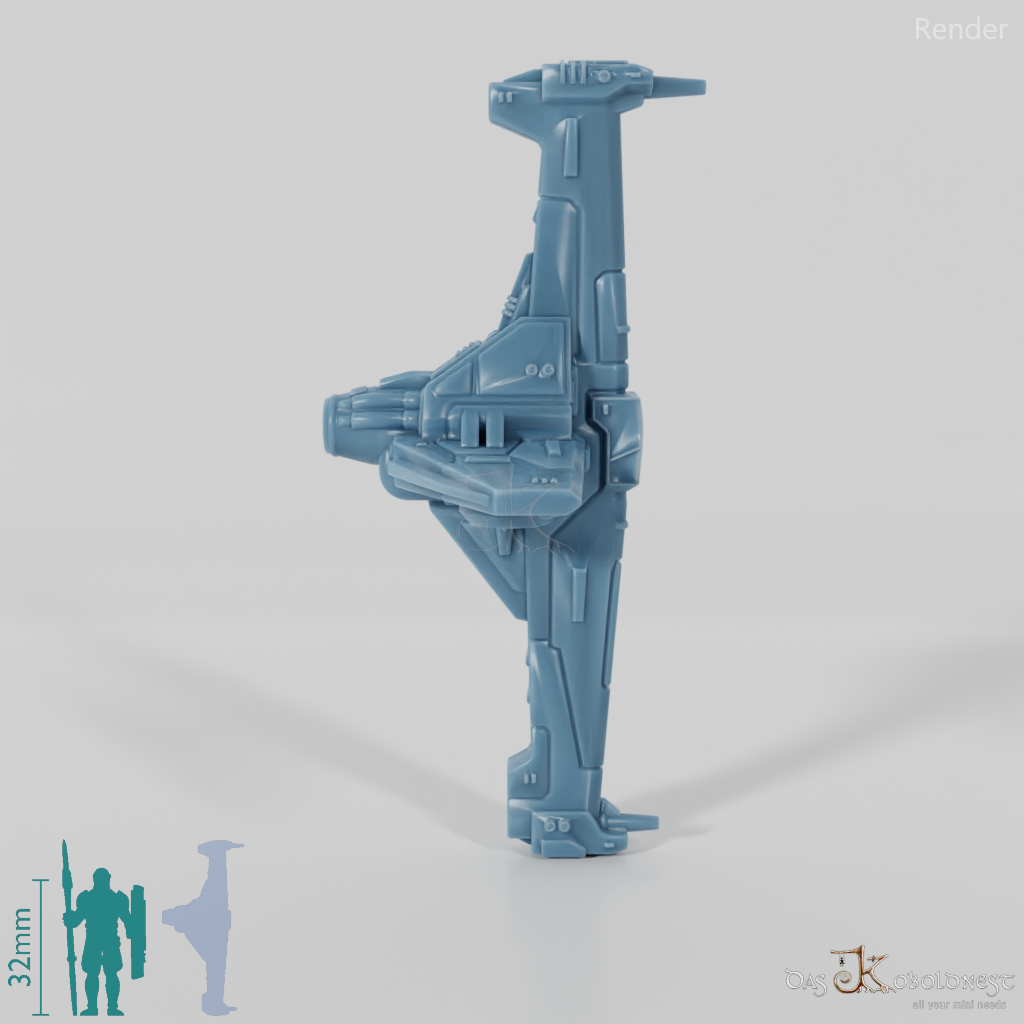 Modell hat ein Loch mit 5 mm Durchmesser an der Unterseite, um auf eine Flugbase montiert werden zu können. Der Modellmaßstab orientiert sich an den gängigen Größen anderer Raumschlachten-Systeme.