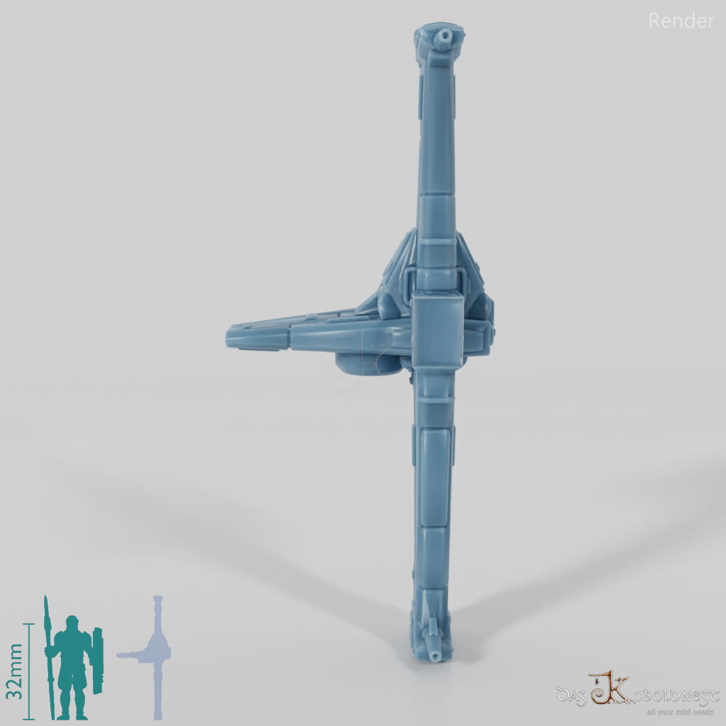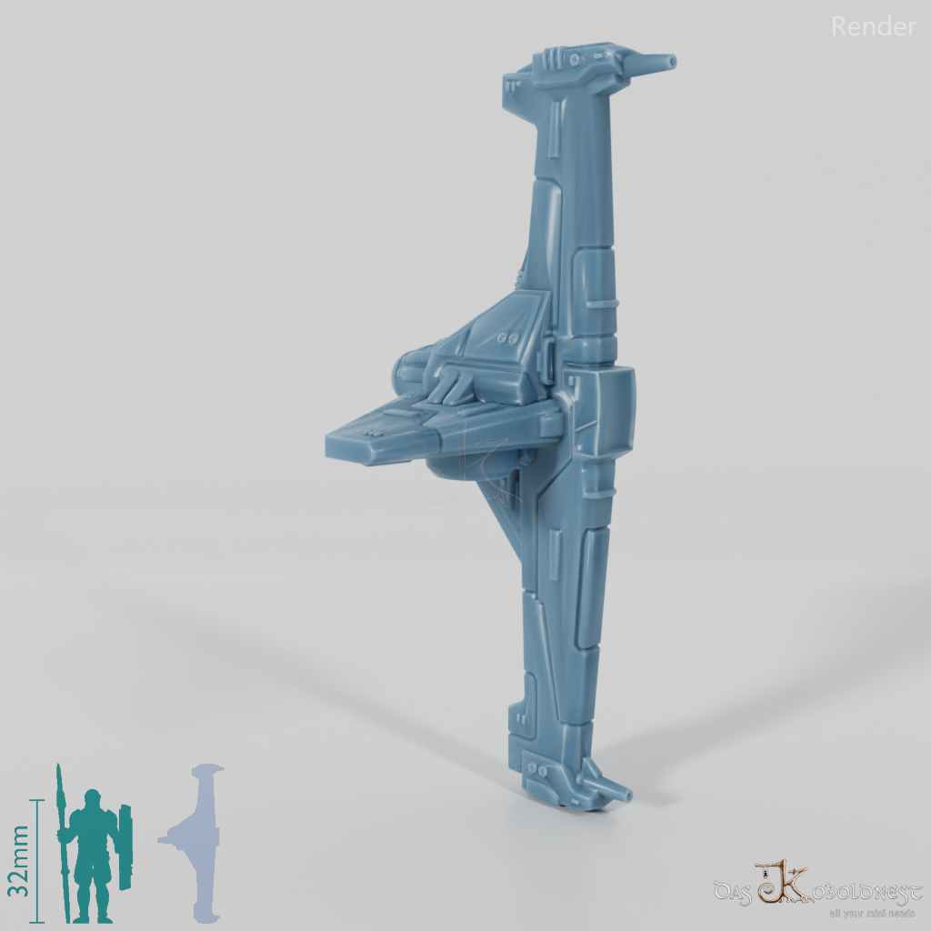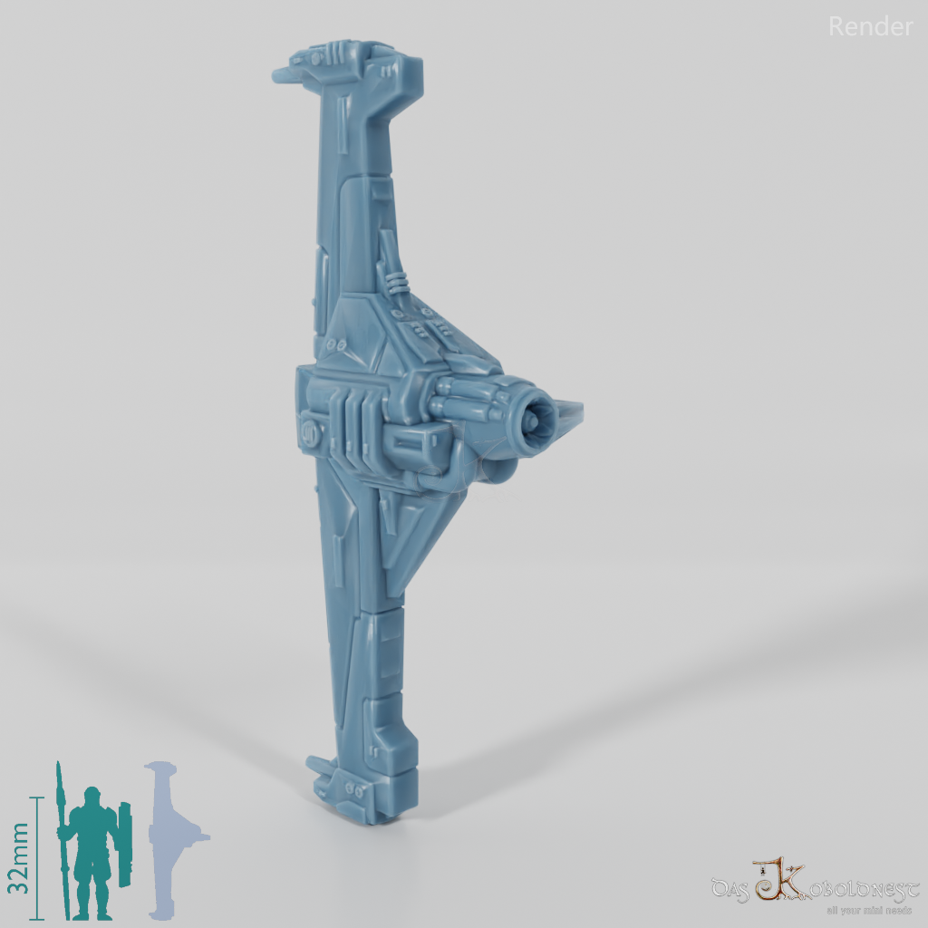 Modell hat ein Loch mit 5 mm Durchmesser an der Unterseite, um auf eine Flugbase montiert werden zu können. Der Modellmaßstab orientiert sich an den gängigen Größen anderer Raumschlachten-Systeme.