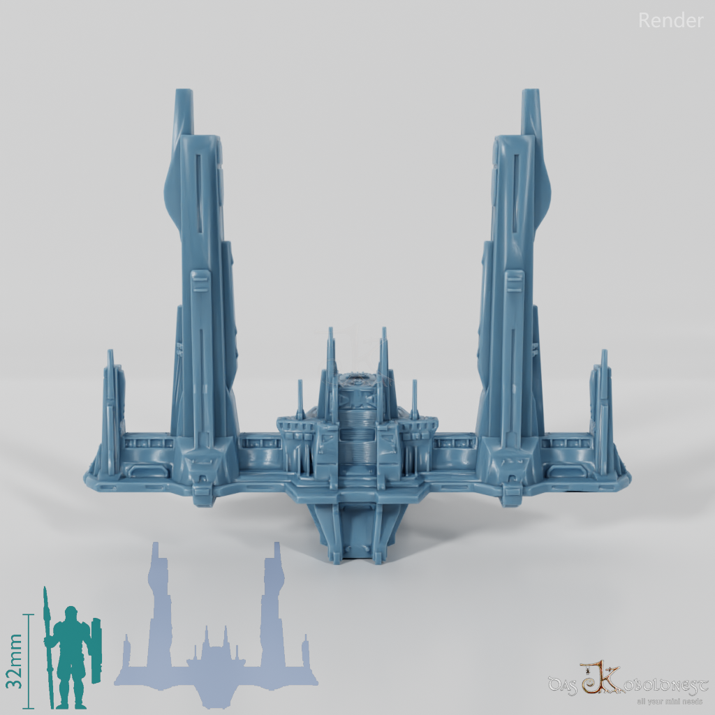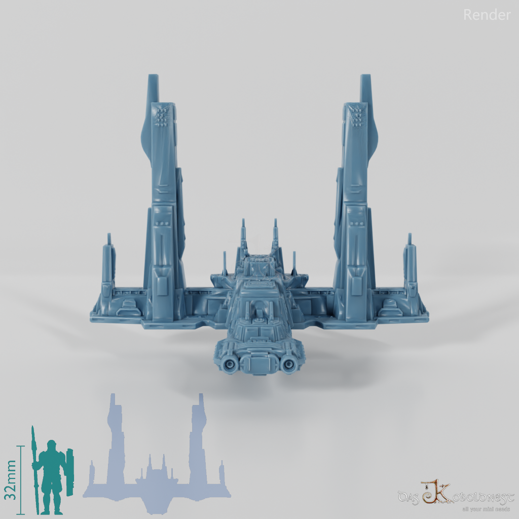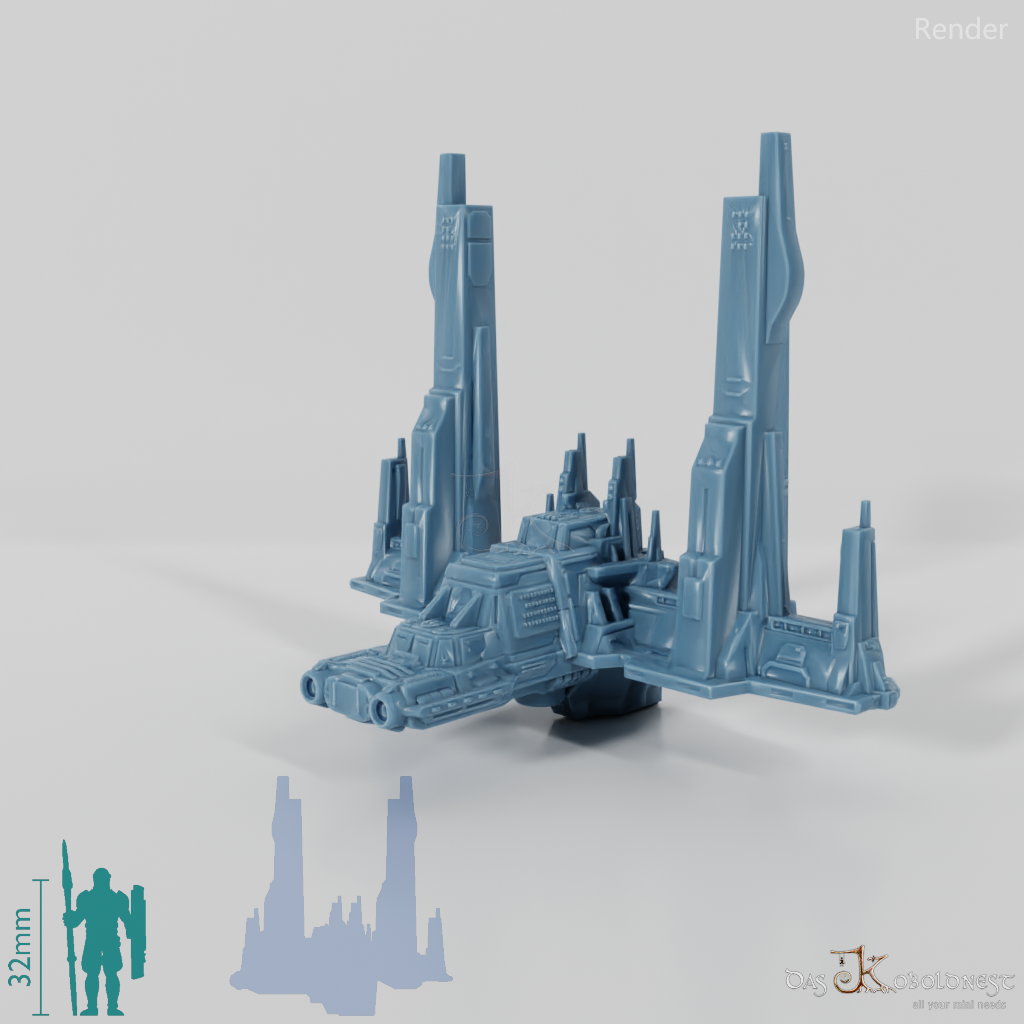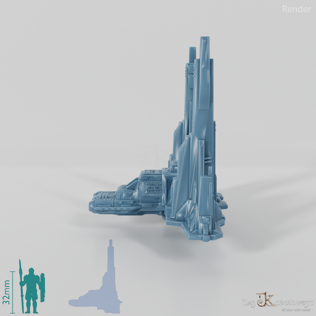 Modell hat ein Loch mit 5 mm Durchmesser an der Unterseite, um auf eine Flugbase montiert werden zu können. Der Modellmaßstab orientiert sich an den gängigen Größen anderer Raumschlachten-Systeme.