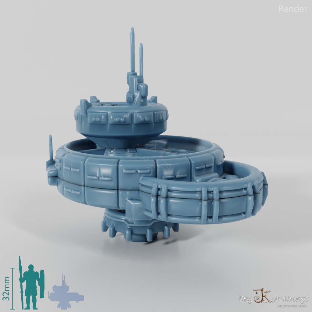 Modell hat ein Loch mit 5 mm Durchmesser an der Unterseite, um auf eine Flugbase montiert werden zu können. Der Modellmaßstab orientiert sich an den gängigen Größen anderer Raumschlachten-Systeme.