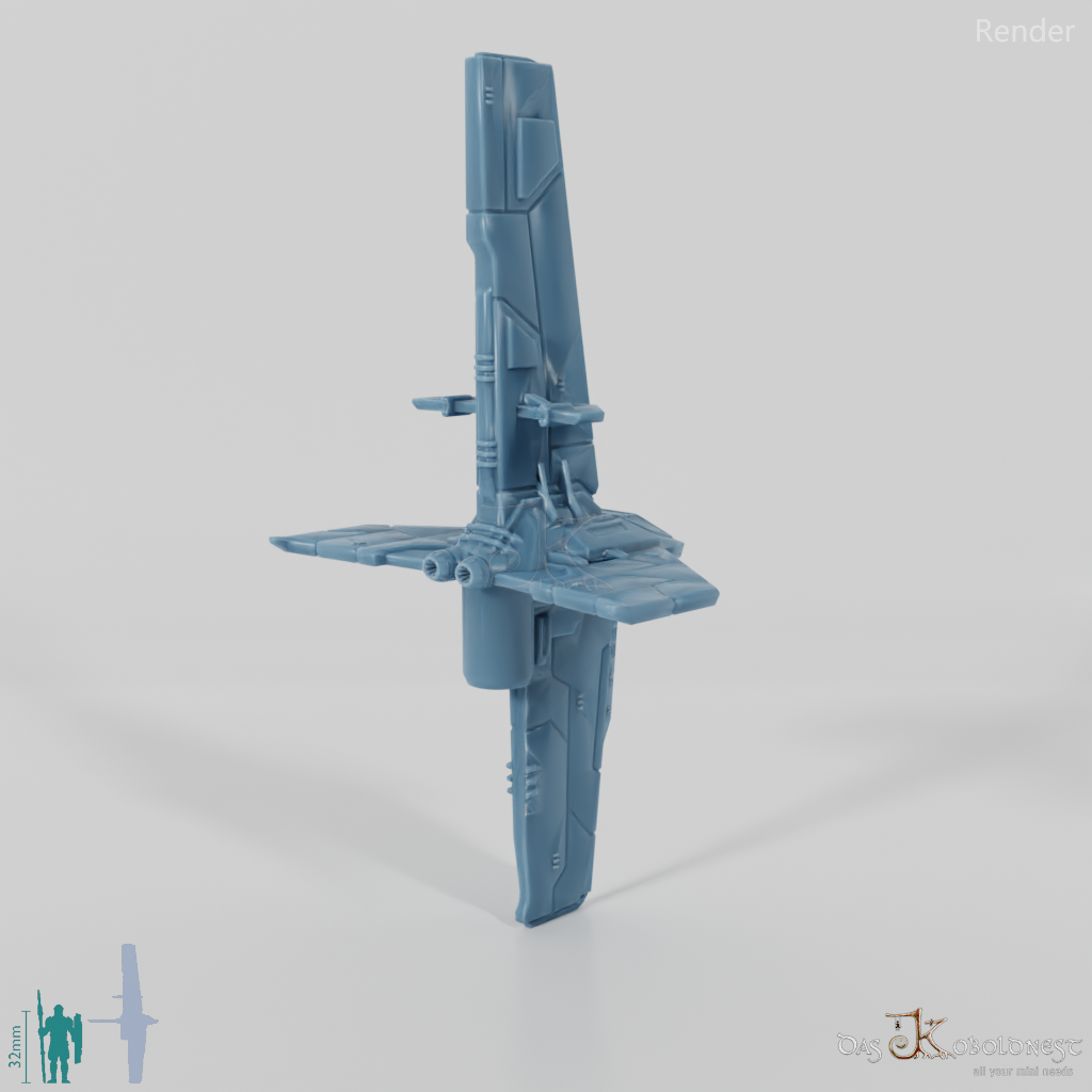 Modell hat ein Loch mit 5 mm Durchmesser an der Unterseite, um auf eine Flugbase montiert werden zu können. Der Modellmaßstab orientiert sich an den gängigen Größen anderer Raumschlachten-Systeme.
