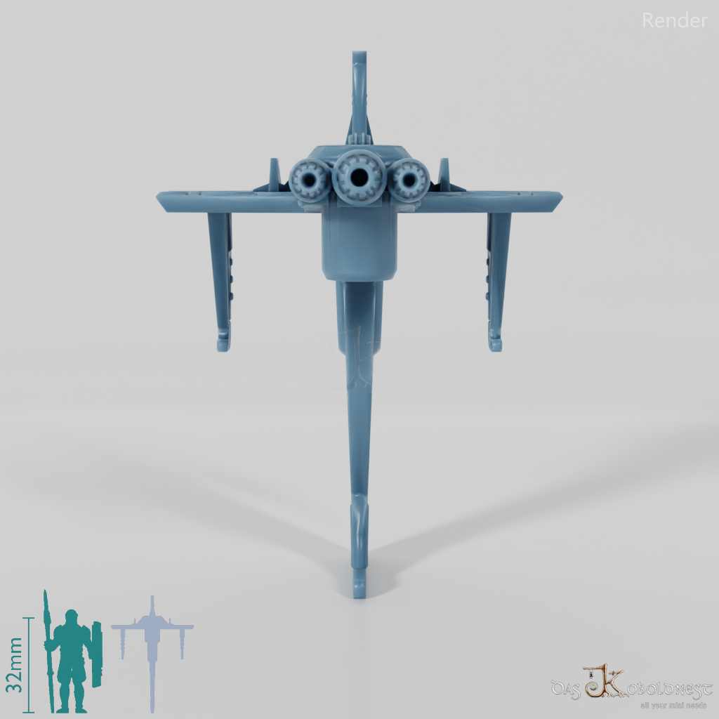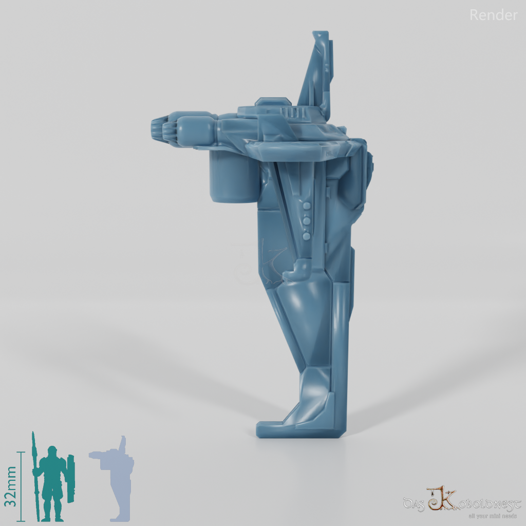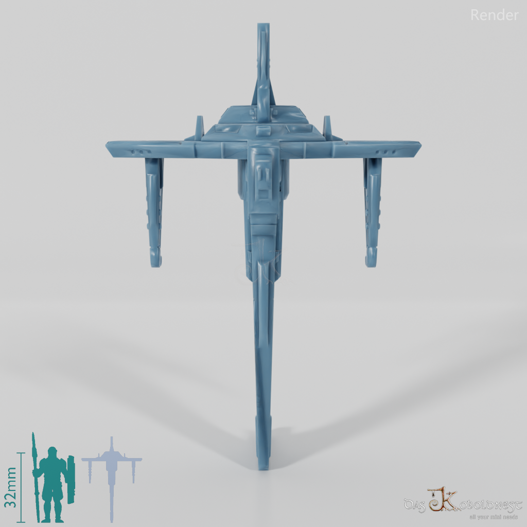Modell hat ein Loch mit 5 mm Durchmesser an der Unterseite, um auf eine Flugbase montiert werden zu können. Der Modellmaßstab orientiert sich an den gängigen Größen anderer Raumschlachten-Systeme.