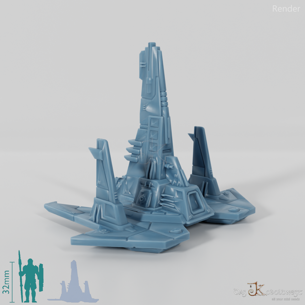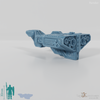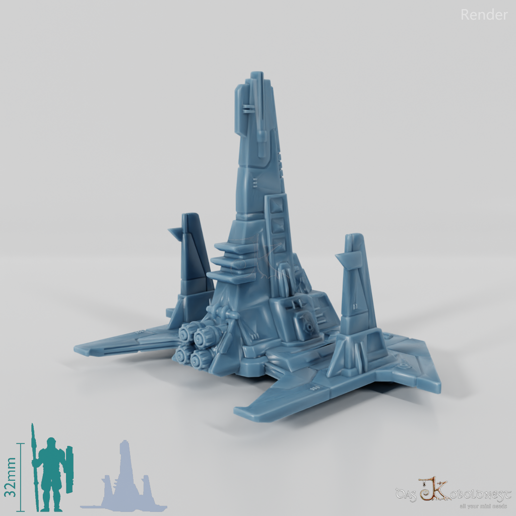 Modell hat ein Loch mit 5 mm Durchmesser an der Unterseite, um auf eine Flugbase montiert werden zu können. Der Modellmaßstab orientiert sich an den gängigen Größen anderer Raumschlachten-Systeme.
