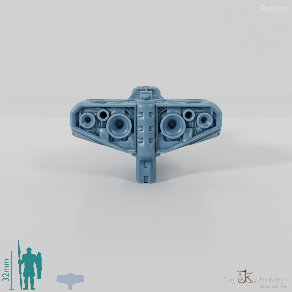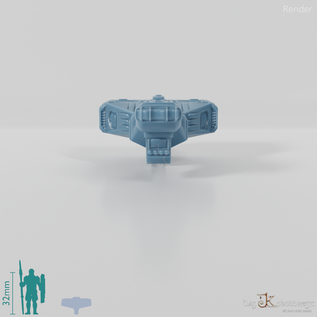 Modell hat ein Loch mit 5 mm Durchmesser an der Unterseite, um auf eine Flugbase montiert werden zu können. Der Modellmaßstab orientiert sich an den gängigen Größen anderer Raumschlachten-Systeme.