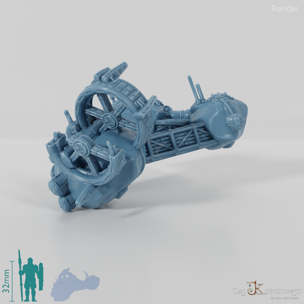 Modell hat ein Loch mit 5 mm Durchmesser an der Unterseite, um auf eine Flugbase montiert werden zu können. Der Modellmaßstab orientiert sich an den gängigen Größen anderer Raumschlachten-Systeme.