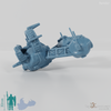Modell hat ein Loch mit 5 mm Durchmesser an der Unterseite, um auf eine Flugbase montiert werden zu können. Der Modellmaßstab orientiert sich an den gängigen Größen anderer Raumschlachten-Systeme.