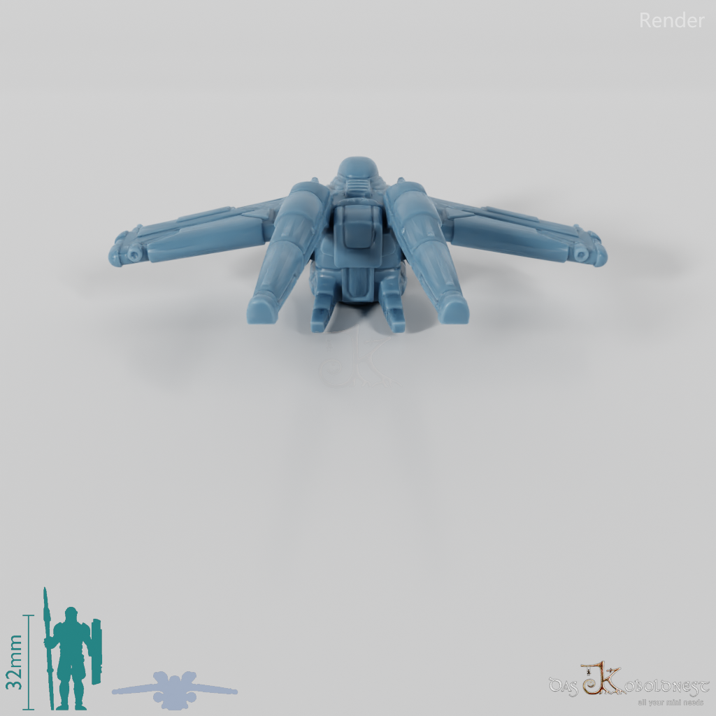 Modell hat ein Loch mit 5 mm Durchmesser an der Unterseite, um auf eine Flugbase montiert werden zu können. Der Modellmaßstab orientiert sich an den gängigen Größen anderer Raumschlachten-Systeme.