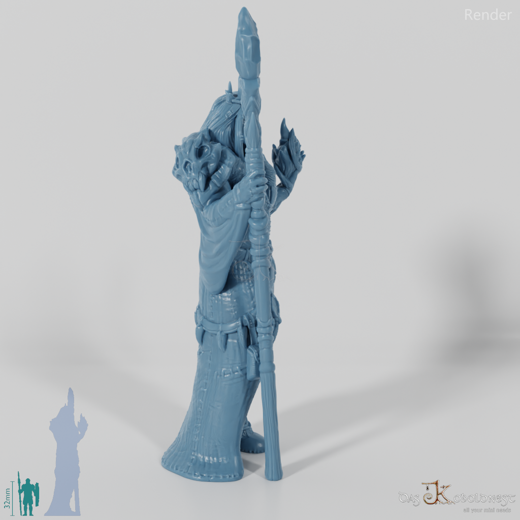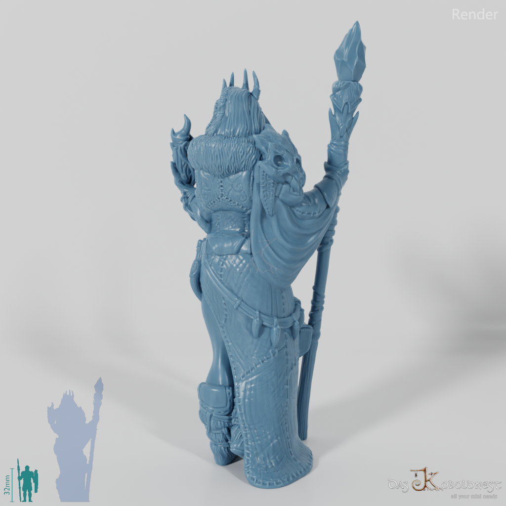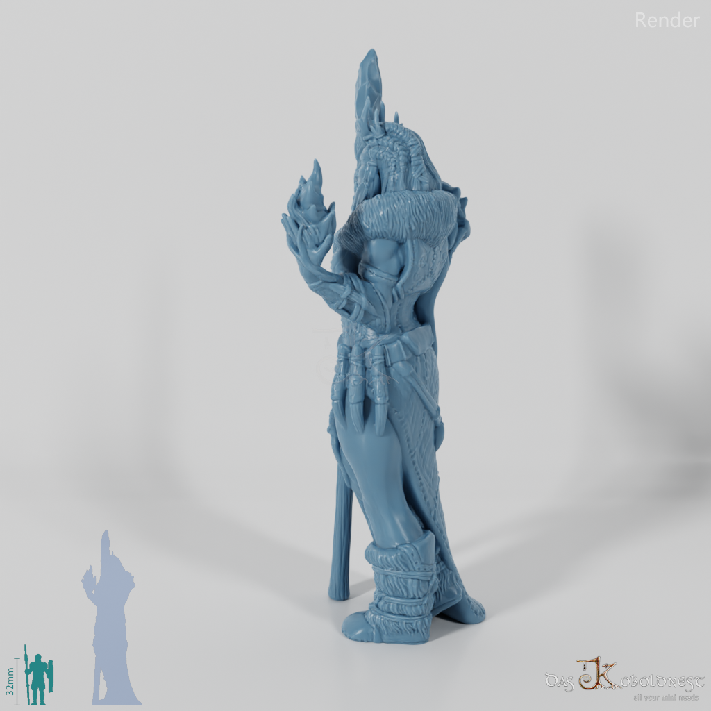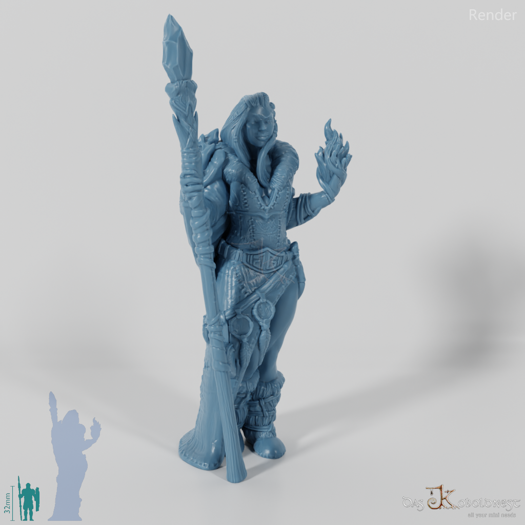 Riesige, humanoide Gestalt, die in Felle und Leder gekleidet ist, einen gigantischen Stab in einer, Flammen in der anderen Hand hält. Zwei verschiedene Modelle verfügbar: