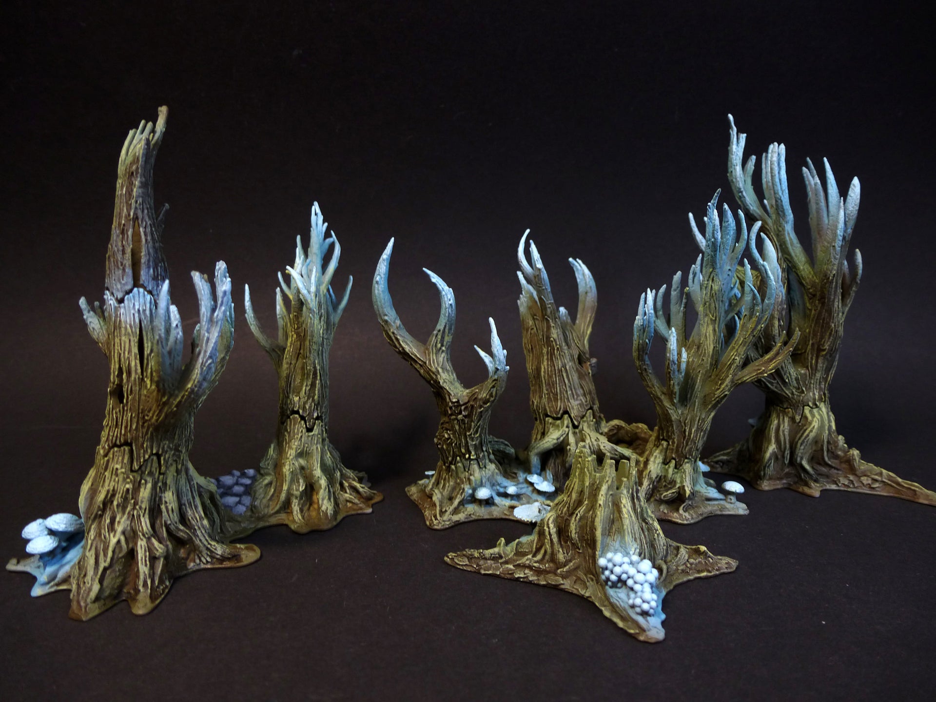 26-teiliges Set aus kahlen, zerbrochenen und abgestorbenen Baumstämmen und Ästen, die in verschiedensten Konfigurationen miteinander kombiniert werden können um individuelle Bäume zu bauen. Zum Set gehören drei einzelne, ein doppelter und ein dreifacher Stammansatz, auf die die Äste aufgesetzt werden können. Dabei gibt es jeweils Äste und Stämme mit großem und kleinem Durchmesser, die über Verbindungsstücke ebenfalls miteinander kombiniert werden können.