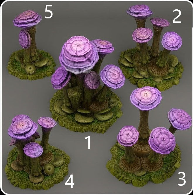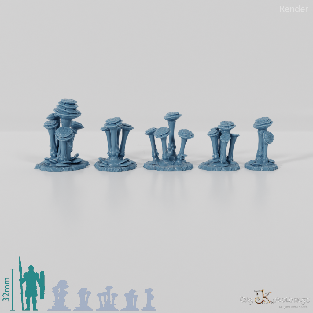 Die Auswahl 'Komplettset (Groß)' beinhaltet alle fünf großen Einzelmodelle. Die Auswahl 'Komplettset (Klein)' beinhaltet alle fünf Modelle, jedoch im Vergleich zu den Einzelmodellen deutlich verkleinert, sodass sie als kleine Pflanzen zur Base- oder Dioramagestaltung verwendet werden können.