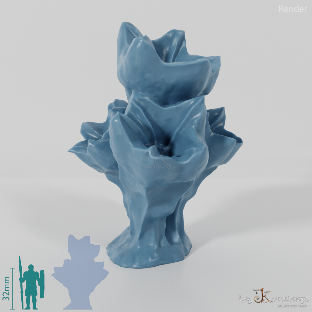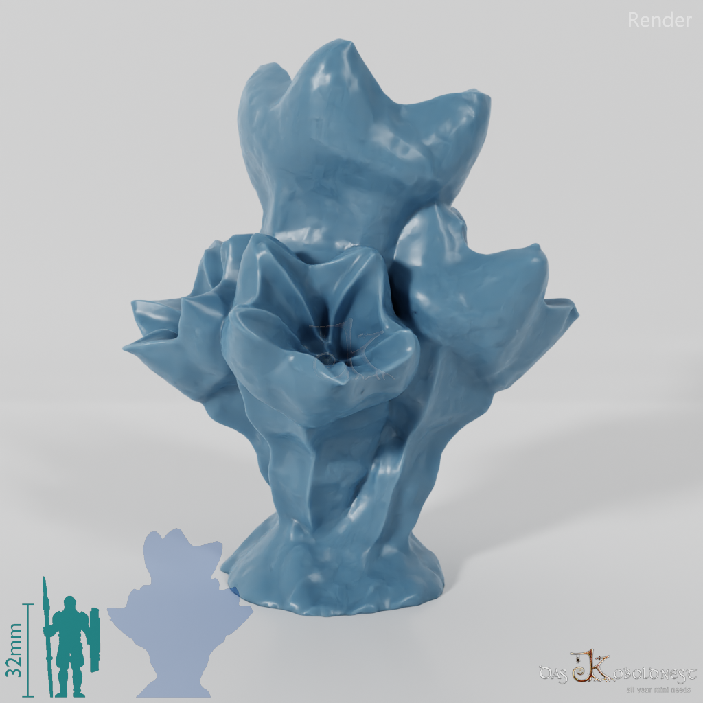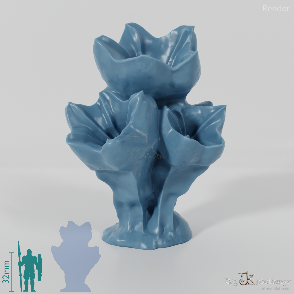 Außerirdischer Pilz, dessen Fruchtkörper wie große Glockenblumenblüten aussehen.