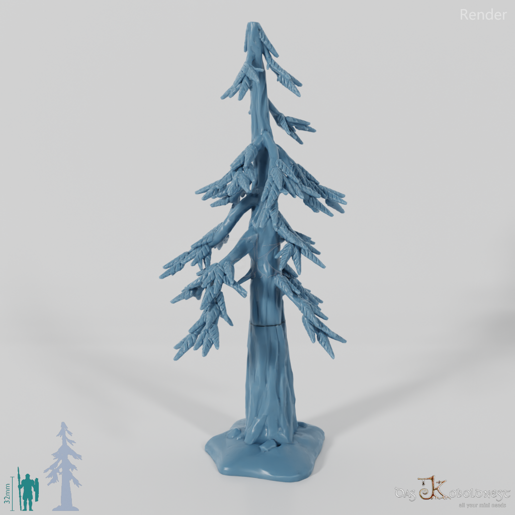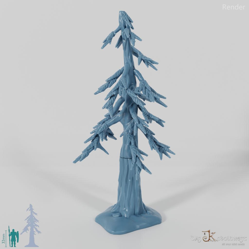 Nadelbaum mit kräftigem Stamm und nadeligen Ästen