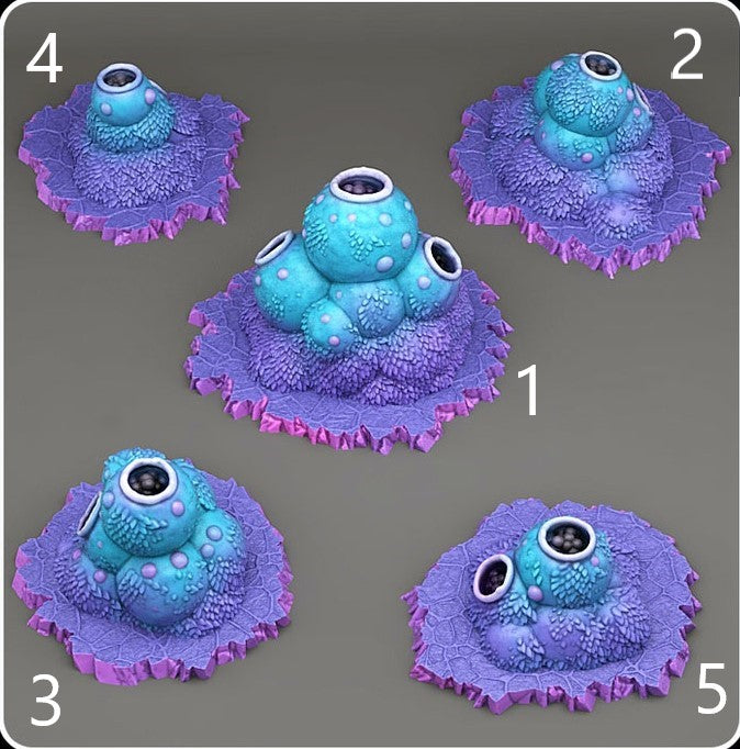 Die Auswahl 'Komplettset (Groß)' beinhaltet alle fünf großen Einzelmodelle. Die Auswahl 'Komplettset (Klein)' beinhaltet alle fünf Modelle, jedoch im Vergleich zu den Einzelmodellen deutlich verkleinert, sodass sie als kleine Pflanzen zur Base- oder Dioramagestaltung verwendet werden können.