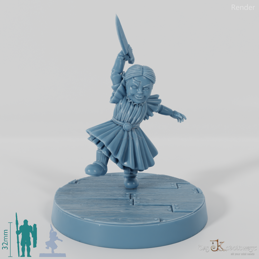 Der Standardmaßstab aller Modelle im Koboldnest ist 1:56 und entspricht der Augenhöhe eines aufrecht stehenden Menschen von 32 mm als Größenreferenz.