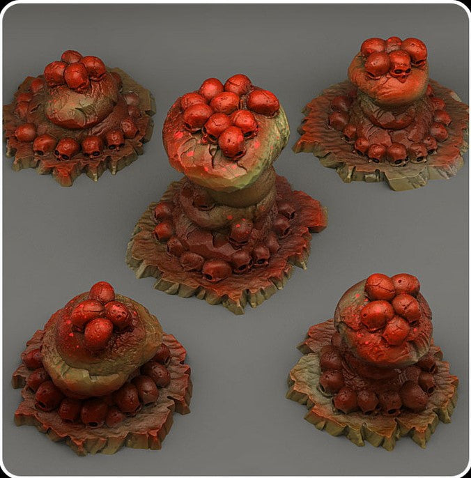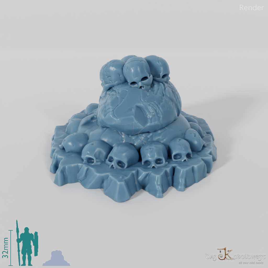 Aufeinandergestapelte flache Steine, die mit Menschenschädeln bedeckt sind