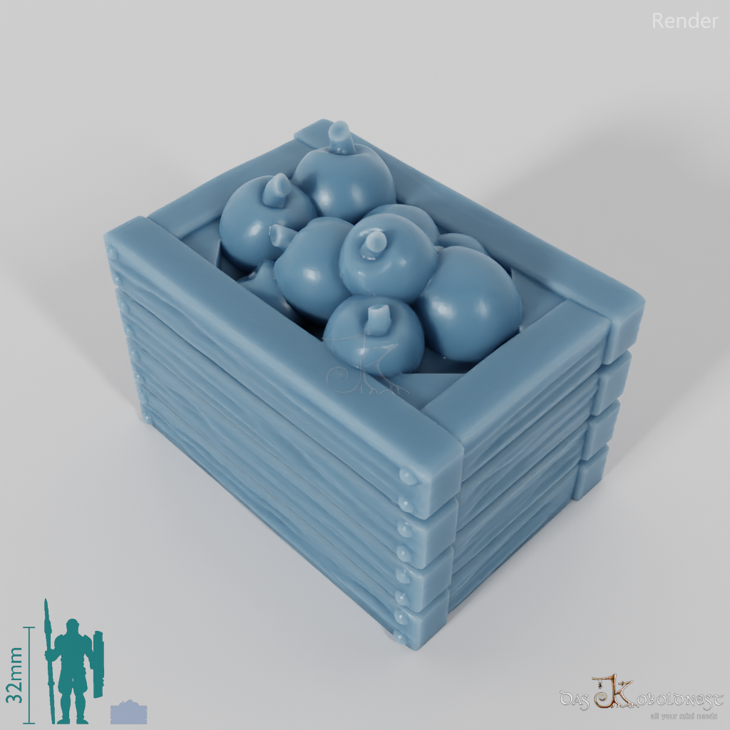 Offene Holzkiste, die mit Äpfeln gefüllt ist
