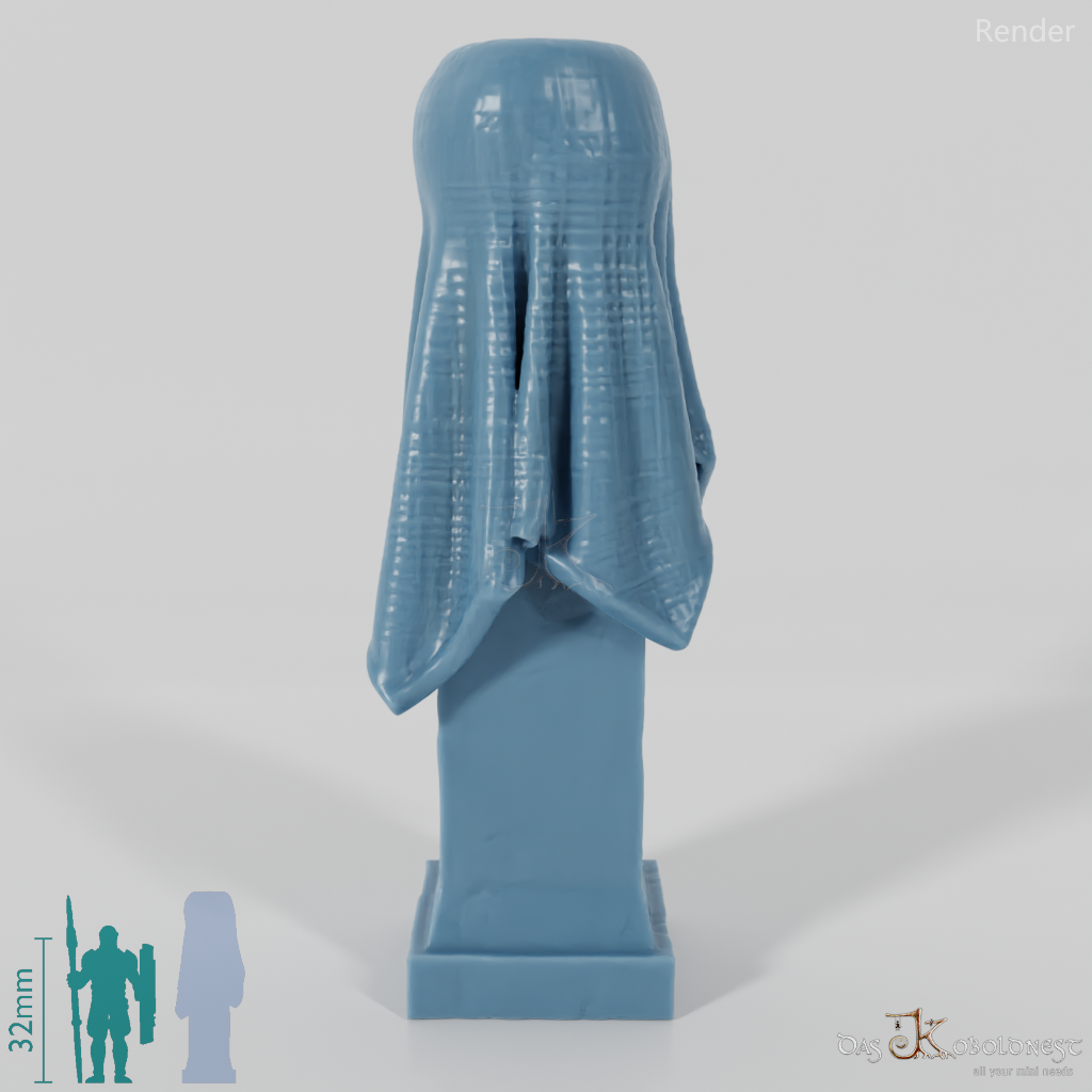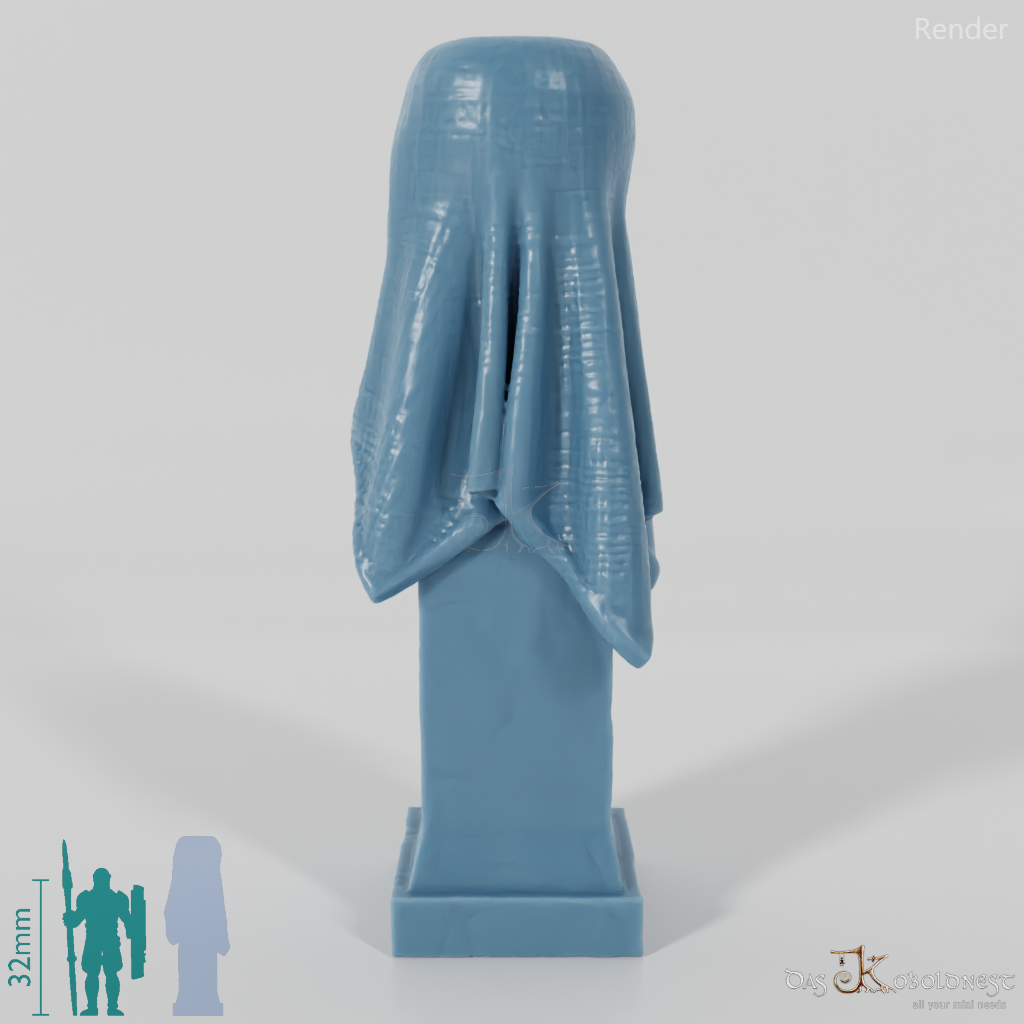 Gemeißelte Steinsäule, die von einem dicken Tuch verhängt ist