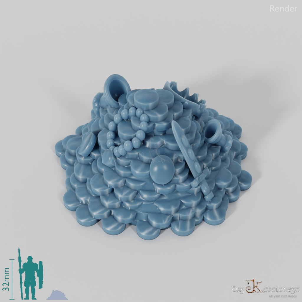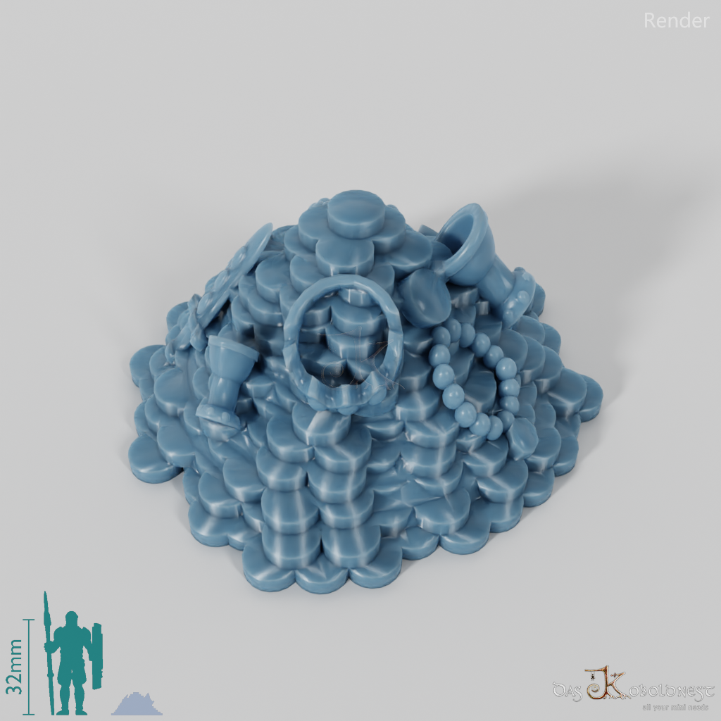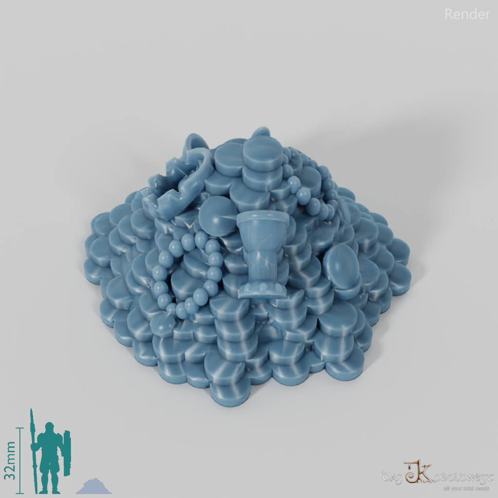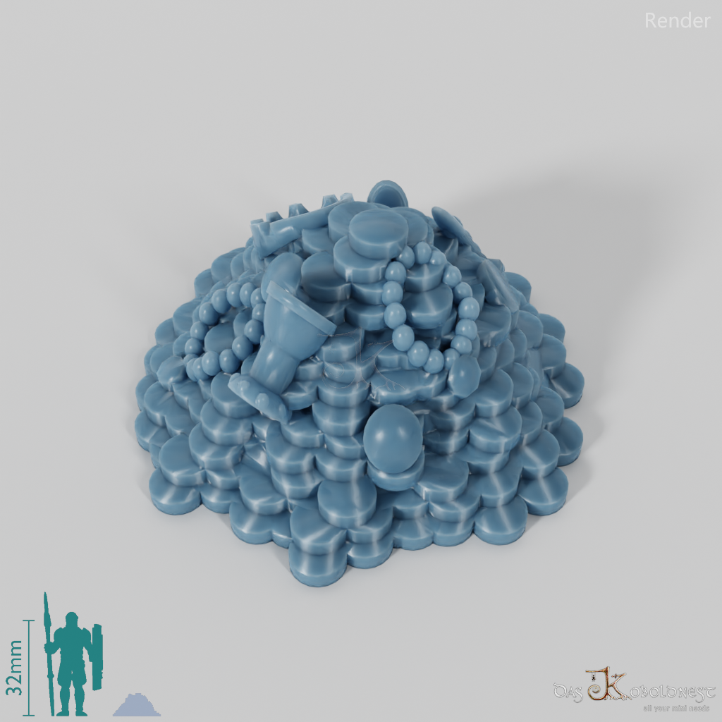 Kleiner Haufen aus Münzen und Schmuckstücken.   Modell: Treasure Pile by mrhers2 , lizenziert unter CC BY 3.0.