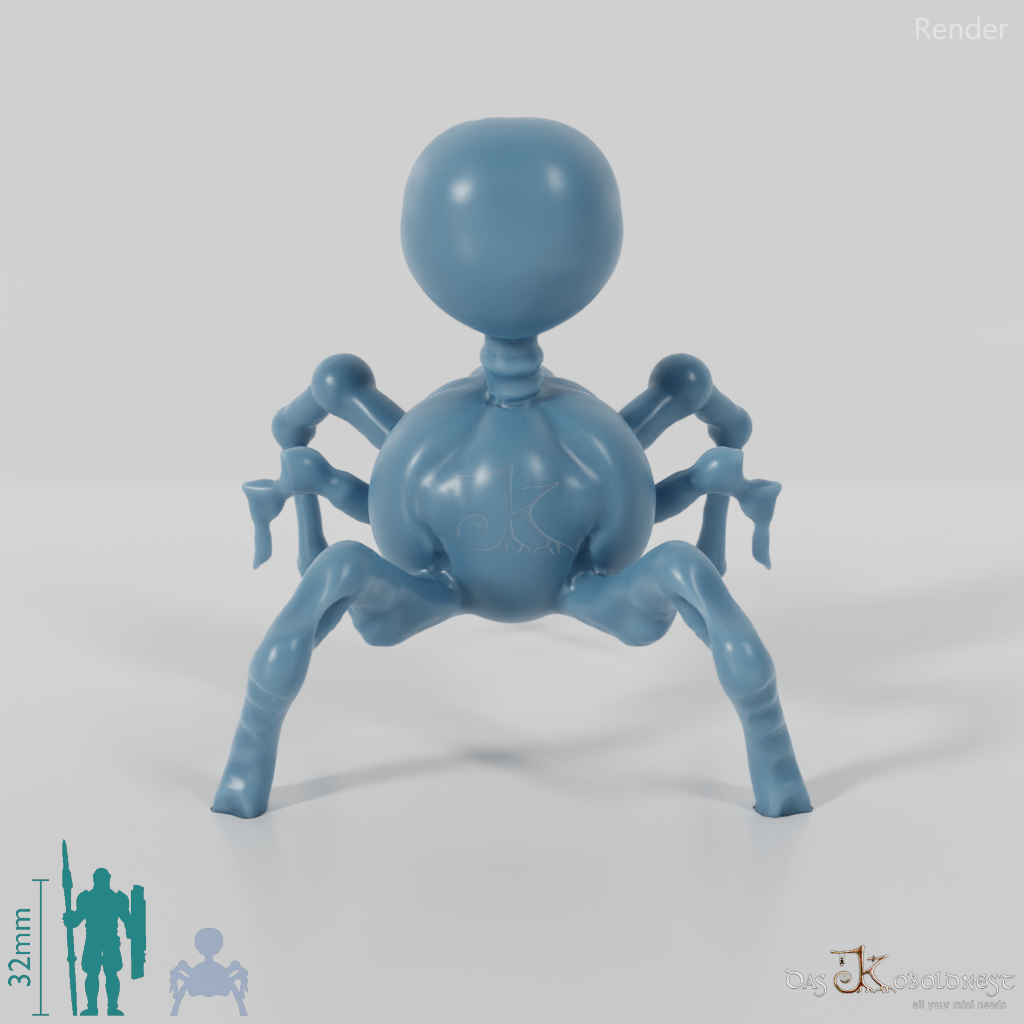 Spinne mit Kürbiskörper und Totenkopf Modell: Halloween Spider 28mm Miniature by Clamsort, lizensiert unter CC BY 3.0.
