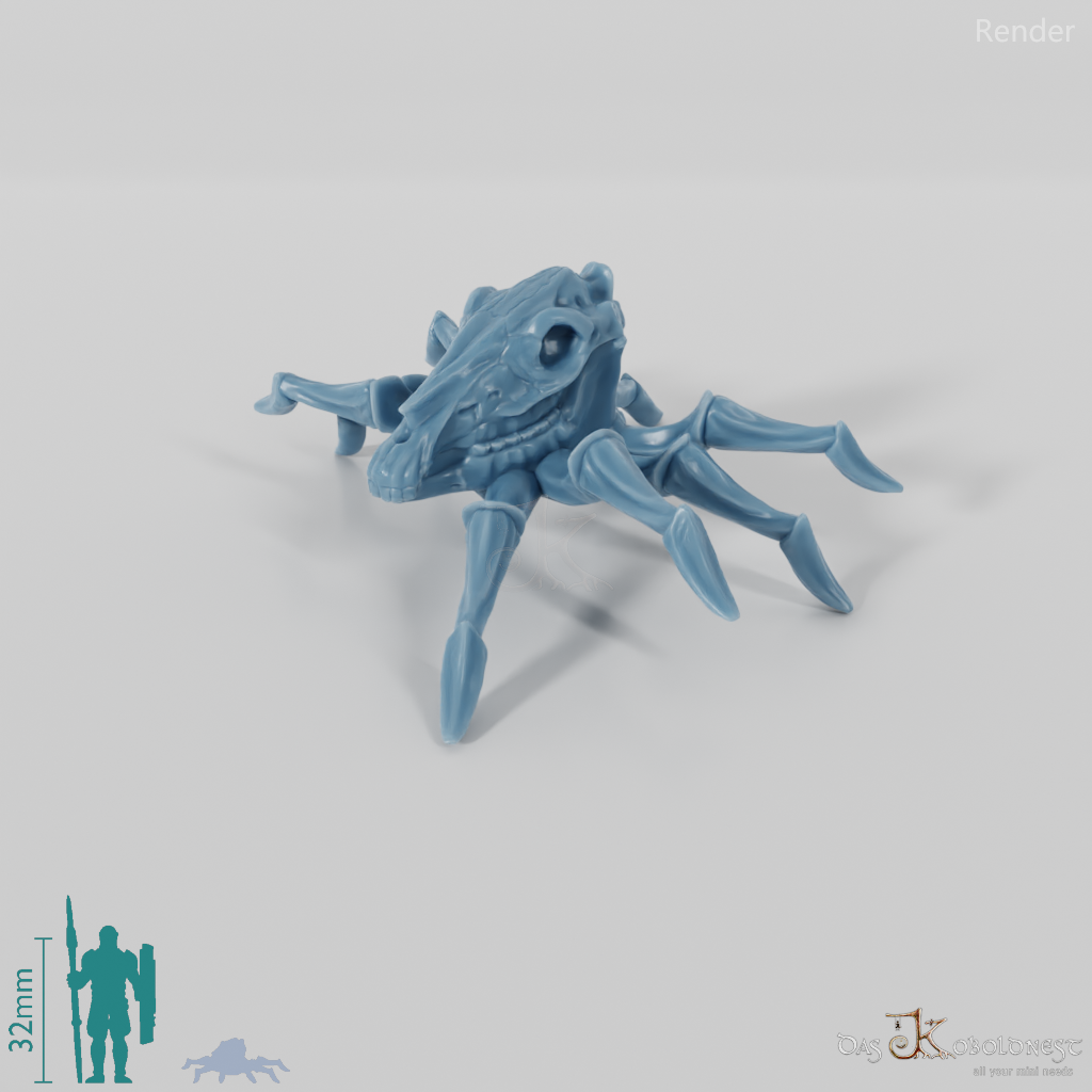 Riesenspinne mit Pferdeschädel anstelle eines Körpers. Modell passt auf eine 25mm-Rundbase