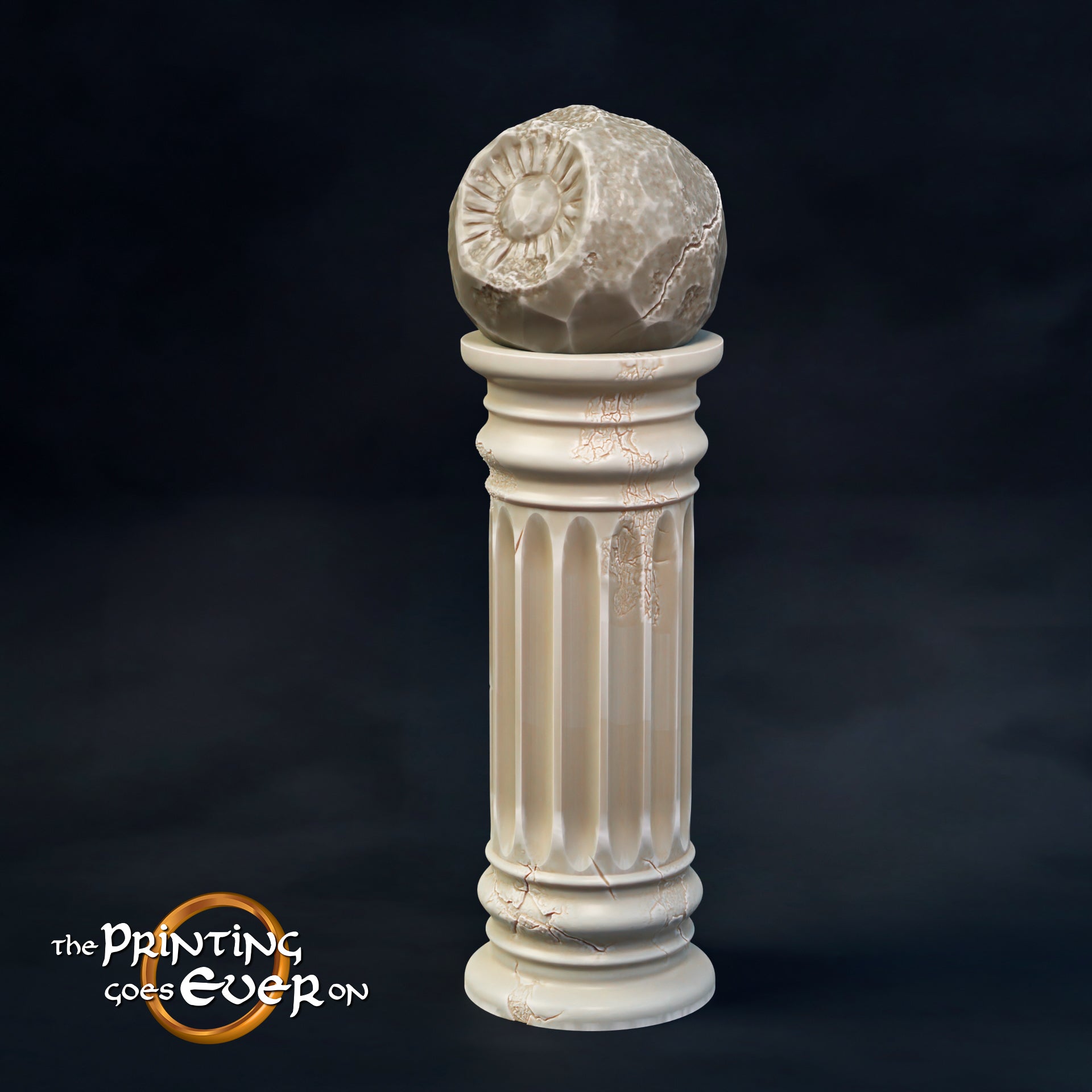 Alte, rissige Säule, auf der ein grob gearbeitetes großes Auge ruht